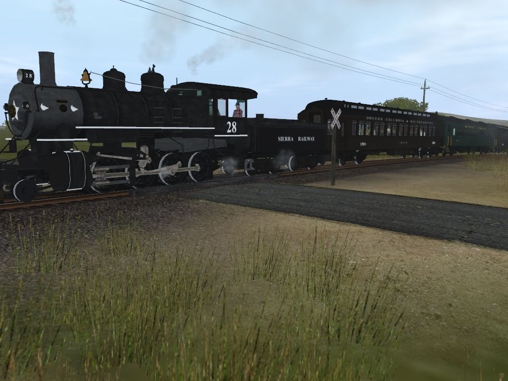 Tags: Trainz Railroad Simulator 2019, Sierra Railway v1.0, Sierra Railway v1.0 - Default, Sierra 2-8-0 #28, Sierra 2-8-0 #28 Tender, OC&SE 1570 Series Chair Car, RDG Archroof Coach, NCO Harriman Wood Coach Fictional, NCO Harriman Wood Combine 1473 (fictional)