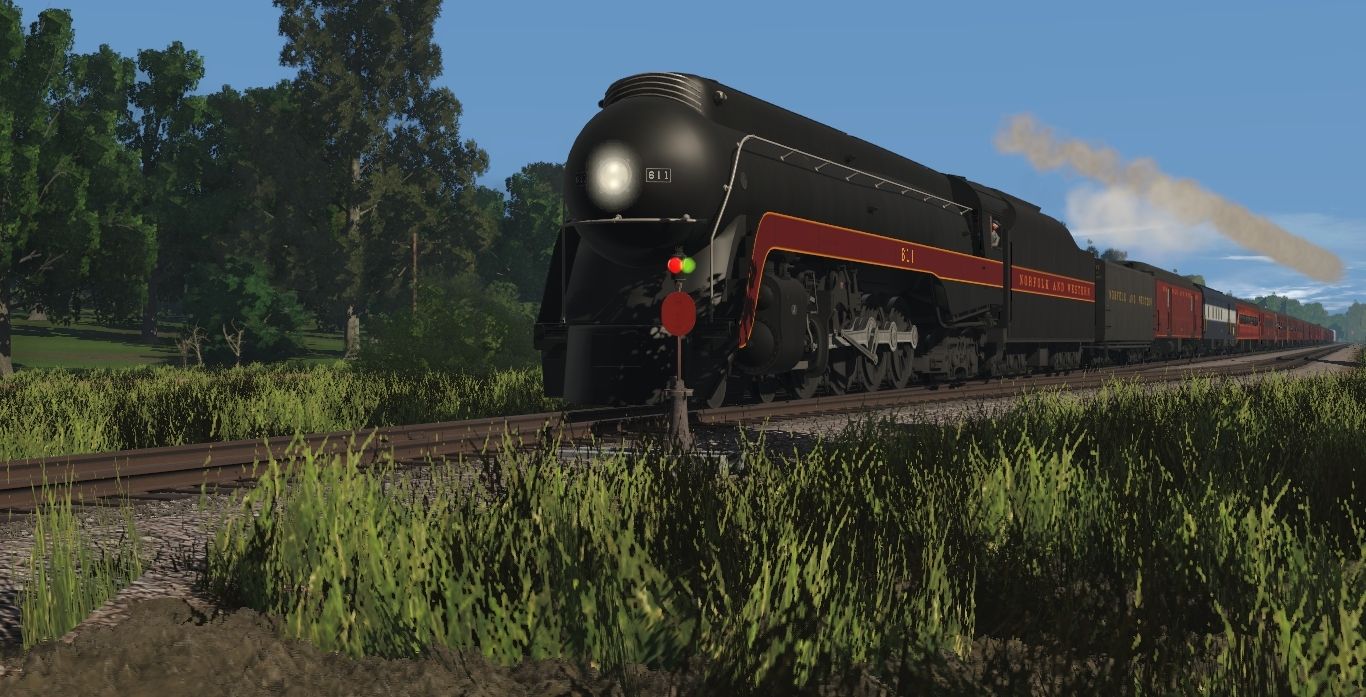 Tags: Trainz Railroad Simulator 2022, Generic Eastern Route - TRS 19, NS Steam Scenes - Early April 1993, N&W J Class Engine, N&W J Class Tender, N&W A Class Aux Tender, N&W Tool Car #1407, CSX Business Train 01 Dorm, RPPX Coach Car #20, WMSR Coach 726 Man O War, RPPX Coach Car #21, RPPX Coach Car #22, WMSR Coach 876 Cumberland, WMSR Coach 880 Frostburg