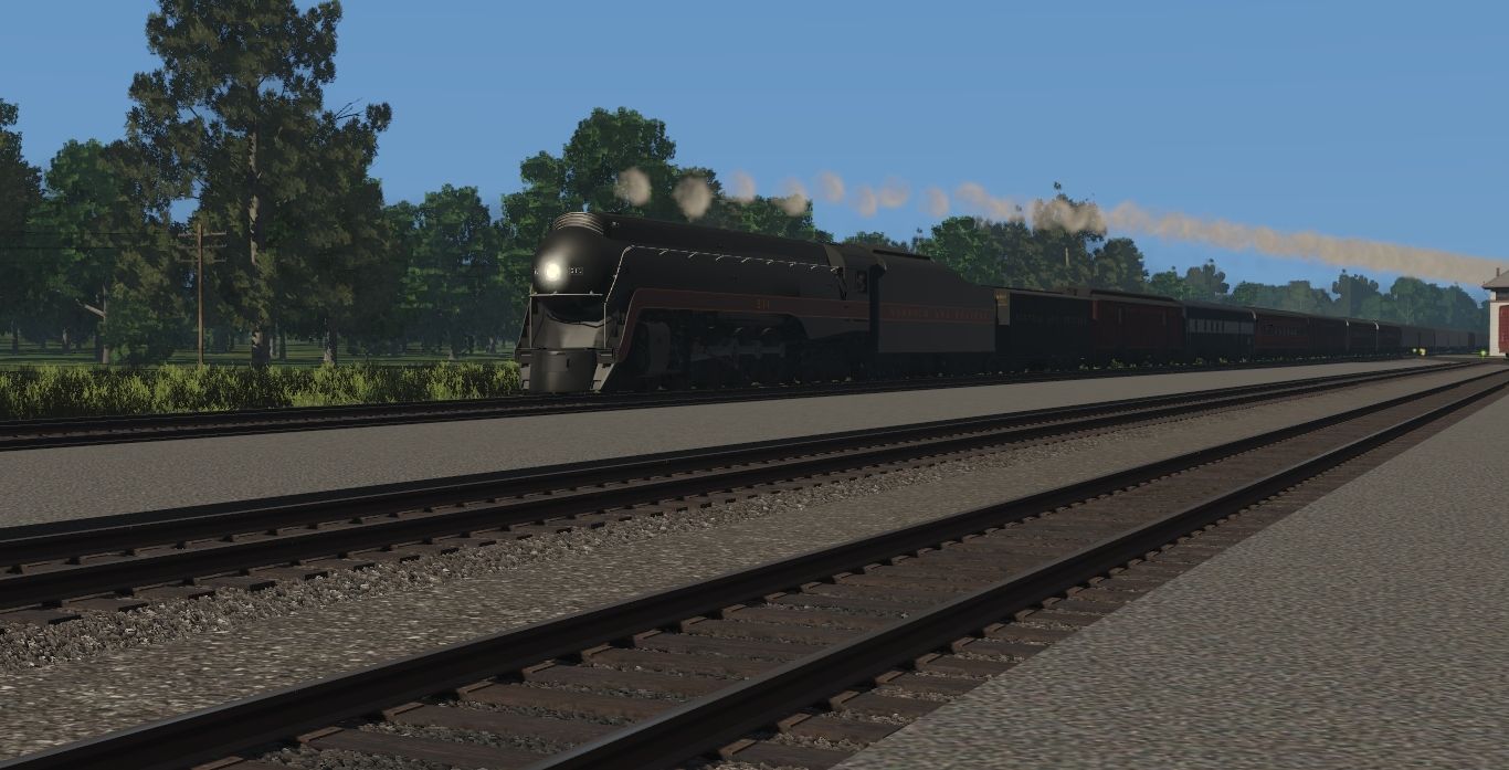 Tags: Trainz Railroad Simulator 2022, Generic Eastern Route - TRS 19, NS Steam Scenes - Early April 1993, N&W J Class Engine, NS GP38-2 HH ex SOU Early, N&W J Class Tender, N&W A Class Aux Tender, N&W Tool Car #1407, CSX Business Train 01 Dorm, RPPX Coach Car #20, WMSR Coach 726 Man O War, NS 60ft Boxcar PS (Autoparts), RPPX Coach Car #21, ATSF 60ft Boxcar PS [Late] (Autoparts)