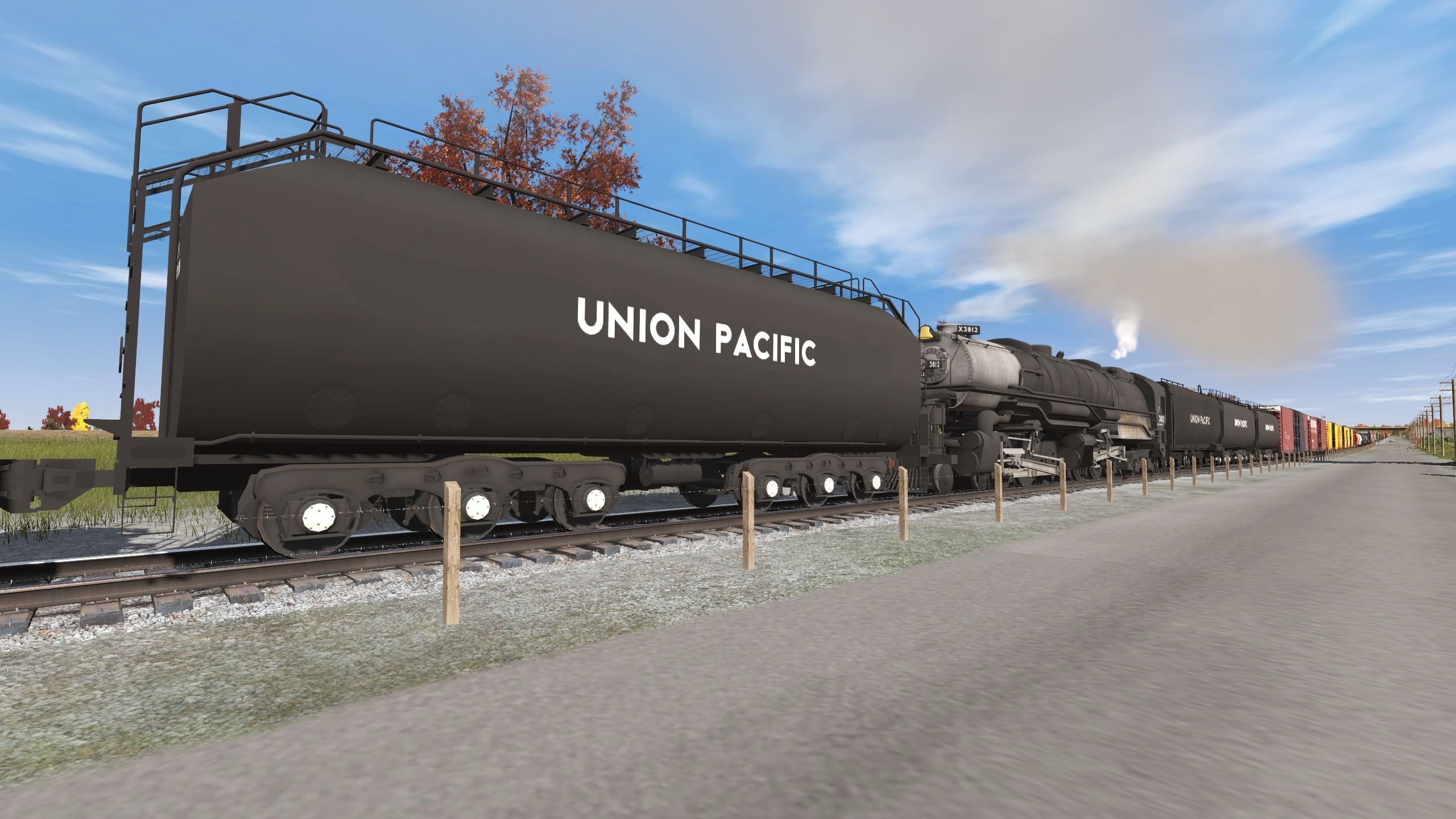 Tags: Trainz Railroad Simulator 2022, sandusky editable, my game 1, UP JMB CSA-1 3812, UP JMB CSA-2 3710, SD60 BN Tiger Stripe, USAX BW9 #90, SW1500 UPY 2593 SINGLE LIGHT, UP Auxiliary Tender Black, UP JMB CSA 20-C Oil Tender Black, SOU 86' Boxcar GSC BS-89 (Claytor) ex-CB&Q, SOU 86' Boxcar GSC BS-91 1974, SLSF 86' Boxcar Thrall Mid (Weathered), SLSF 86' Boxcar Thrall Early (Weathered)