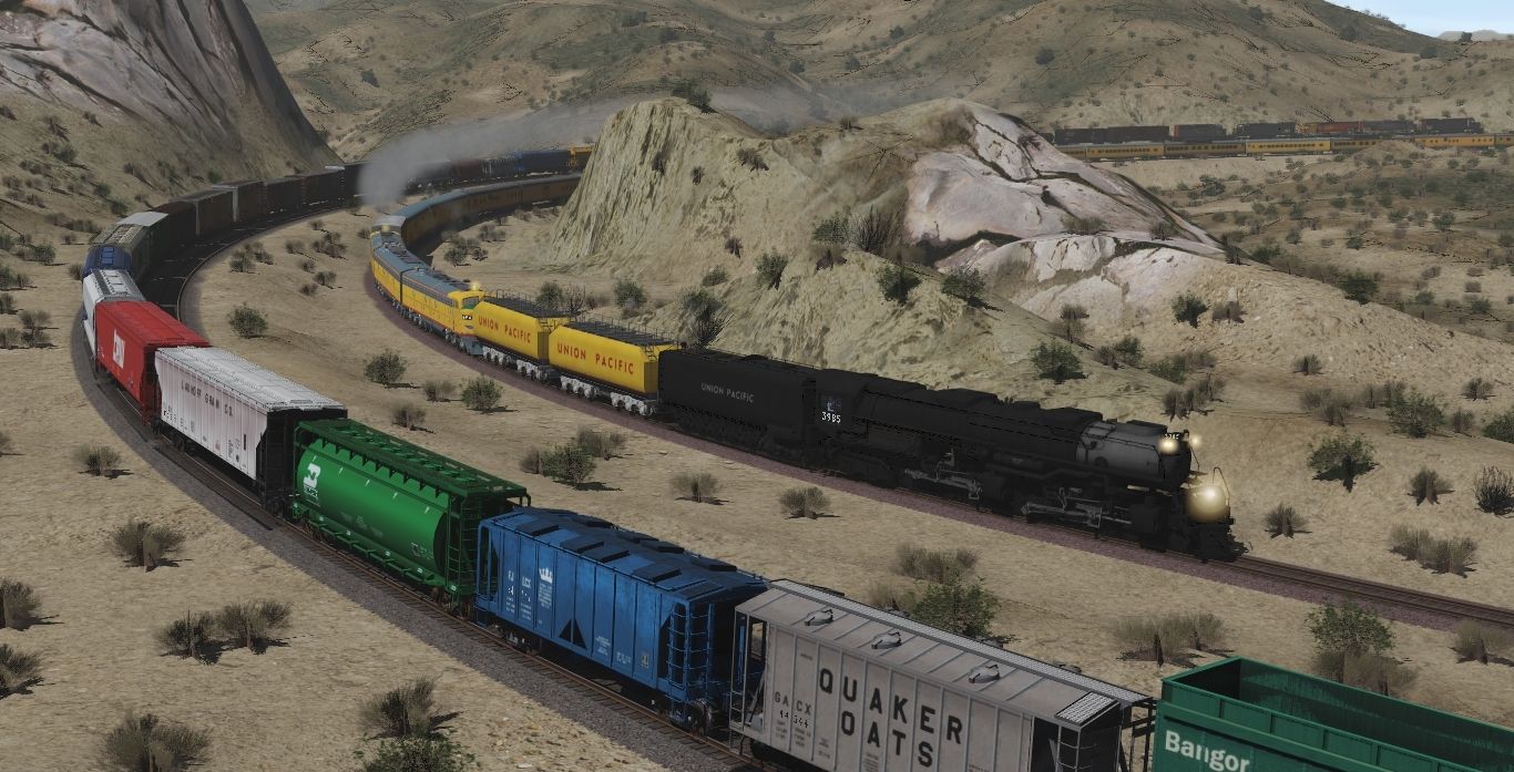 Tags: Trainz Railroad Simulator 2022, Cajon Subdivision - 1990 Part 1: The Pass, UP Steam Scenes - Mid May 1994, UP JMB Challenger Oil Clean, up e9b, up e9a, SP SD40 phase 2, SP SD45T-2 ph1a, SP SD40T-2 (SPSF), SP SD40T-2 W1, SP SD40T-2 ph2a M, BN 446951 Evans Covered Hopper v1, BAR Woodchip Converted Boxcar DES, RDG 50' PS-1 XLd (1967)