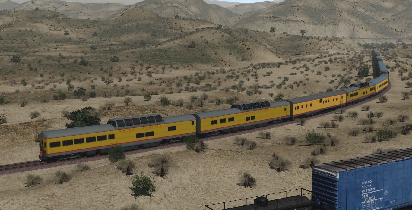 Tags: Trainz Railroad Simulator 2022, Cajon Subdivision - 1990 Part 1: The Pass, UP Steam Scenes - Mid May 1994, up e9a, up e9b, UP JMB Challenger Oil Clean, SP SD40 phase 2, SP SD45T-2 ph1a, SP SD40T-2 (SPSF), SP SD40T-2 W1, SP SD40T-2 ph2a M, GTW 86' Boxcar GSC 306500-306550 (Weathered), PC 60' X61/X61C Boxcar, UP 60' ACF Boxcar A-90-4