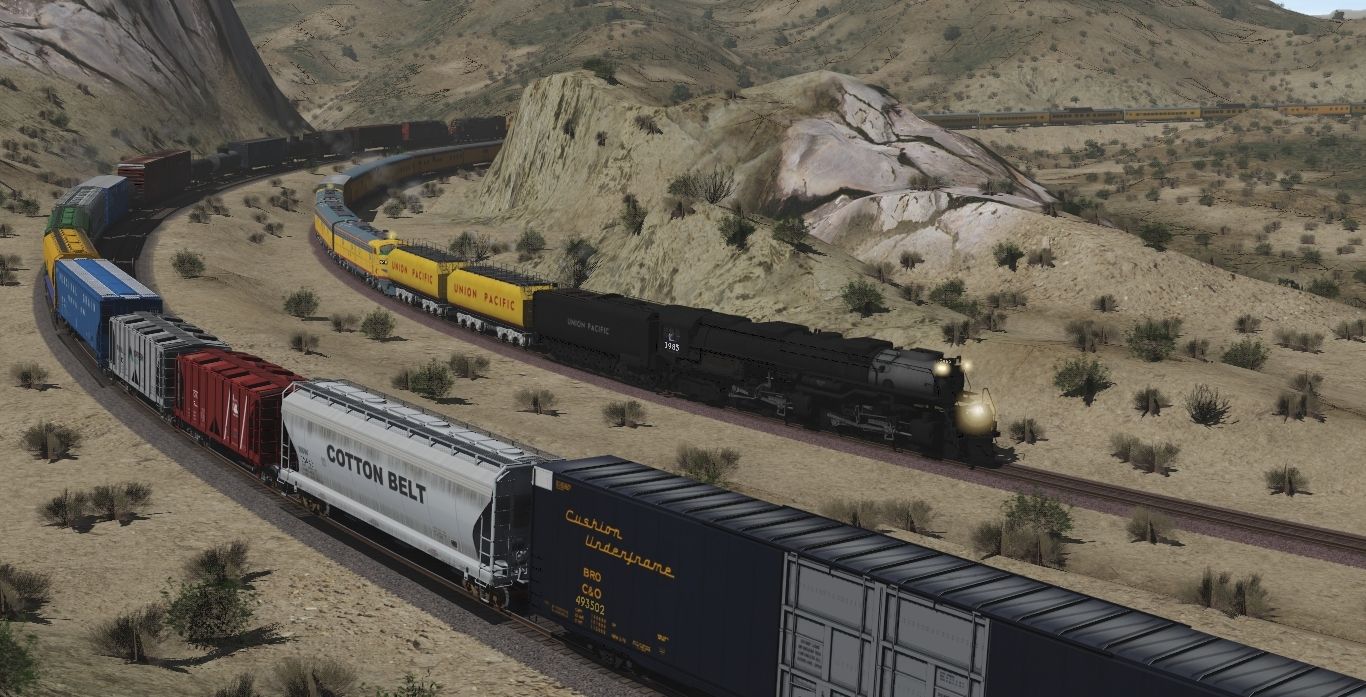 Tags: Trainz Railroad Simulator 2022, Cajon Subdivision - 1990 Part 1: The Pass, UP Steam Scenes - Mid May 1994, UP JMB Challenger Oil Clean, up e9b, up e9a, SP SD40 phase 2, SP SD45T-2 ph1a, SP SD40T-2 (SPSF), SP SD40T-2 W1, SP SD40T-2 ph2a M, Missouri Illinois 50' ACF Boxcar, UP 40' Hy-Cube B-50-55, SSW 50ft Boxcar B-70-69 (Autoparts)