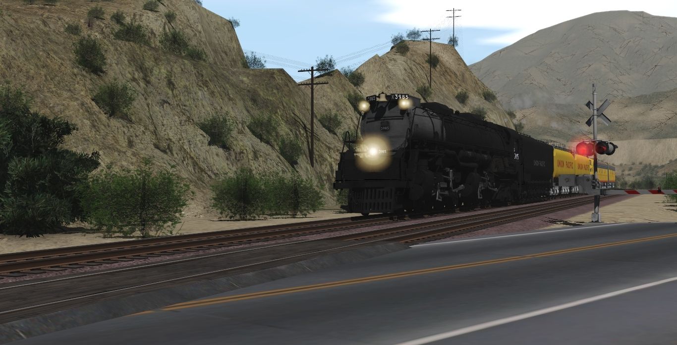 Tags: Trainz Railroad Simulator 2022, Cajon Subdivision - 1990 Part 1: The Pass, UP Steam Scenes - Mid May 1994, UP JMB Challenger Oil Clean, up e9b, up e9a, ATSF C44-9W, ATSF SD45u, ATSF SD45-2 blue/yellow warbonnet, Invisible Train, UP JMB Centipede tender oil Clean, UP Auxiliary Tender, UP Heritage Fleet Stair Car/Box car, up baggage 5772