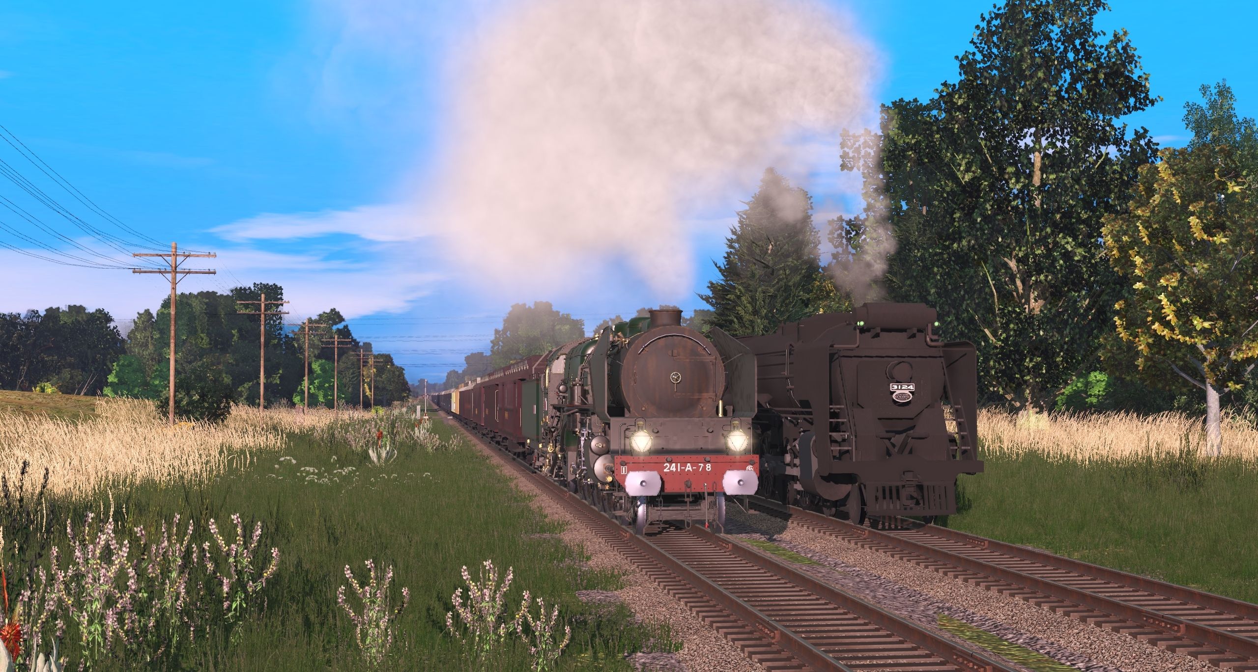 Tags: Trainz Railroad Simulator 2022, [TL] Rainsville - Danville, Default, SNCF (ex-Etat) 241A Mountain - Green, NYC Mohawk 3124, SNCF (ex-Etat) Tender 35C - Green, NYC Mohawk Tender, FMA SNCF PE16ALB, AOE 800715 Service-Laundry 'Los Angeles, FMA SNCF PE16B, FMA SNCF PA21S, AOE 800755 Crew Sleeper 'Yellowstone Park, FMA SNCF PA21L, AOE 800668 Crew Sleeper 'Grand Canyon