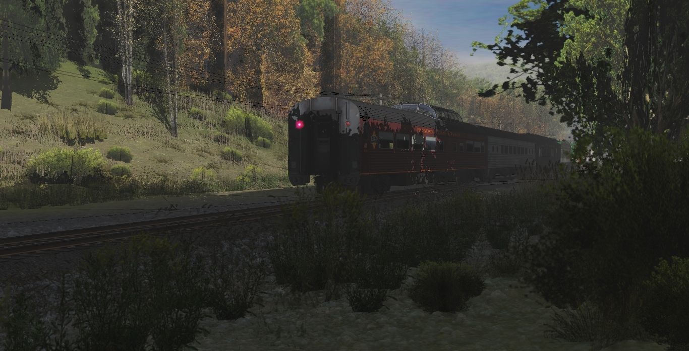 Tags: Trainz Railroad Simulator 2022, Linville Cutoff, 1970's Scenes - Late October 1975, SOU FP7 Claytor Green Ph1b Bicentennial #6141, SOU FP7 Claytor Green Ph1b Bicentennial #6133, Invisible Train, RPPX Coach Car Dome, Southern Coach Lounge, Southern Baggage-Buffet-Lounge V2
