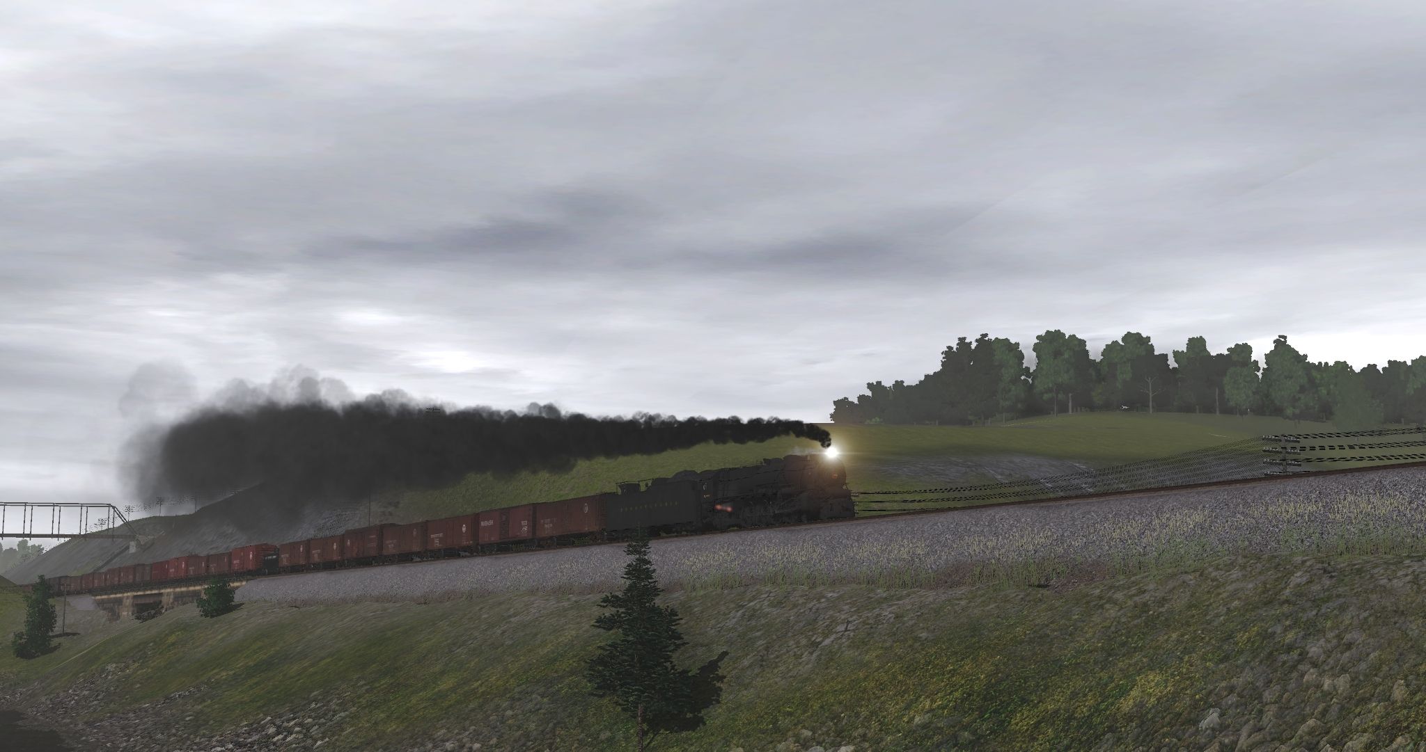 Tags: Trainz Railroad Simulator 2022, Pennsy Lines Pitts- Phil x Laurel Mountains 1930s, Default, PRR M1b Engine Early, PRR L1s Mikado Engine Prewar Futura 3 Digits, PRR I1sa Engine Pre-War Futura, PRR M1b Tender, 40ft Boxcar PRR X-29 Dreadnought Ends, 40ft Boxcar WAB Wood, 40ft Boxcar PRR X31b, 36ft Tank Car Gulf, 40ft PRR AAR boxcar, 40ft Boxcar USRA SS PRR post-1928, 40ft Boxcar PRR X31a
