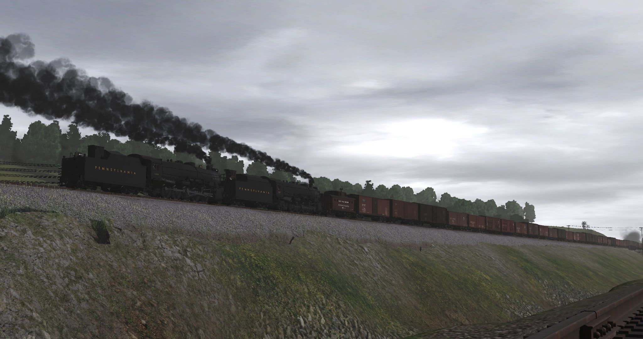 Tags: Trainz Railroad Simulator 2022, Pennsy Lines Pitts- Phil x Laurel Mountains 1930s, Default, PRR I1sa Engine Pre-War Futura, PRR L1s Mikado Engine Prewar Futura 3 Digits, PRR M1b Engine Early, PRR I1sa Tender 90F82 Futura, PRR L1s Mikado Tender Futura 90F75 w Doghouse, PRR N5c Caboose Steam-Era Early, 40ft Boxcar SLSF, 50' Boxcar P&LE 40's, CN 503500 series boxcar, 36ft Boxcar NH Fishbelly, 40ft Boxcar USRA SS CNJ post-1937