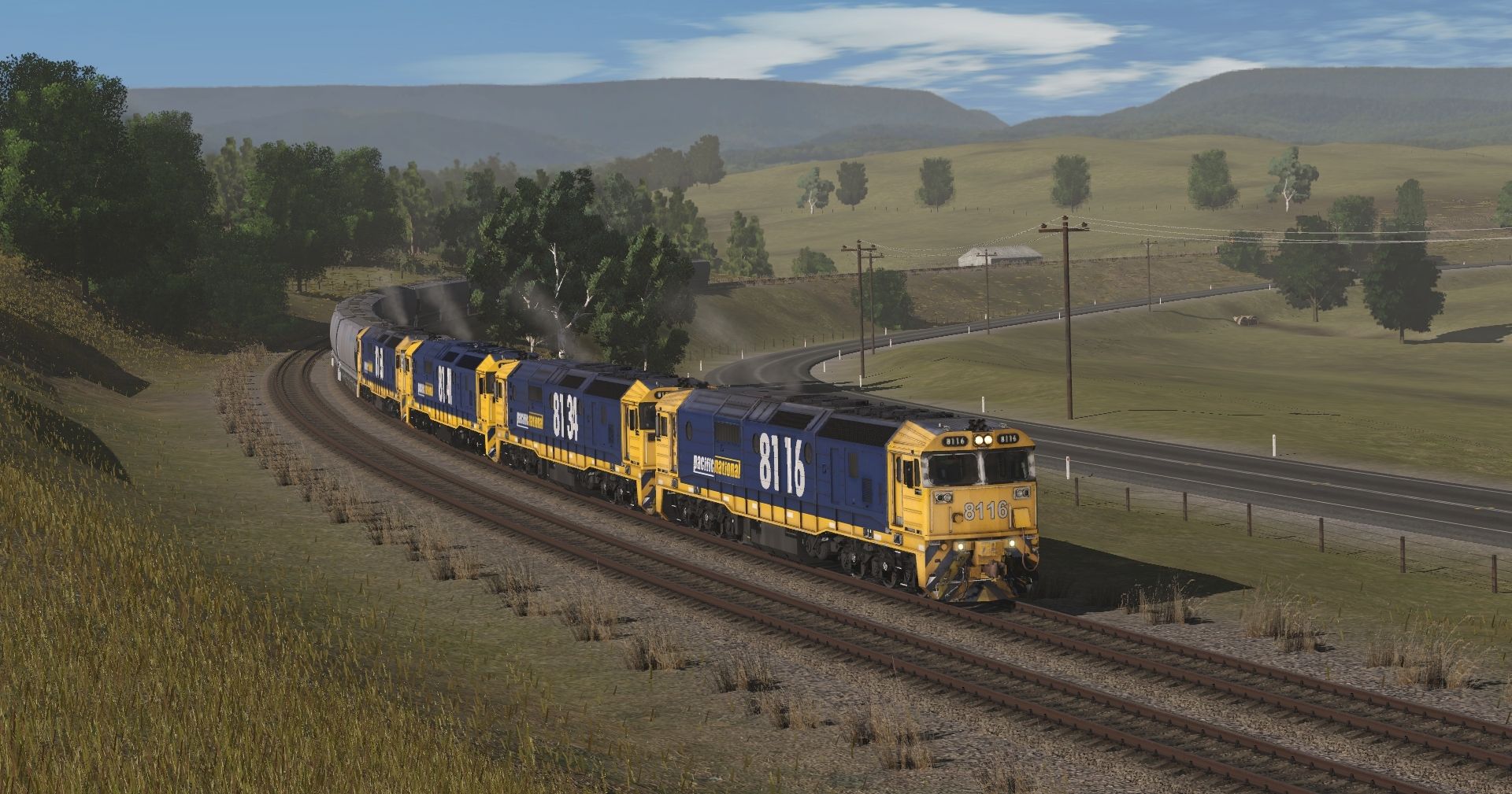 Tags: Trainz Railroad Simulator 2022, NSW Donnybrook Branch extended, Default, Flying Cam PBR, PN 81 12+ T1, PN 81 12+ T4, PN 82 12+, PN 82 22+, Manildra Group MGFH Flour Hopper
