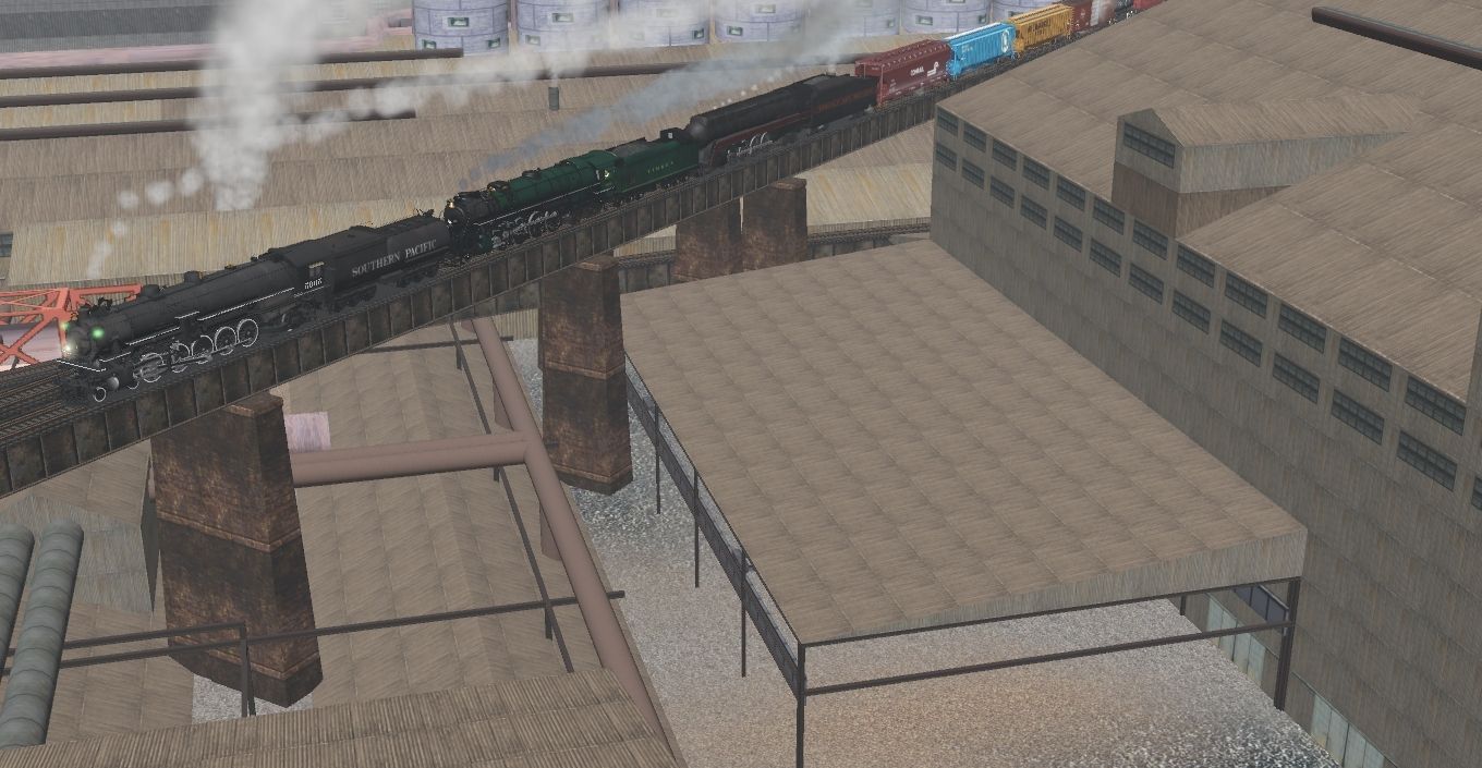 Tags: Trainz Railroad Simulator 2019, Harbor Town, SP SP-1 Prewar Russia Iron, Timken 1111, Timken 1111 Tender, N&W Class J 600, SP 4-10-2 Tender, N&W Class J 600 tender, 4Bay HopperConrail89077(LARS), TUME-300555-Covered-Hopper-GN, TUME-300551-Covered-Hopper-MILW, TUME-300503-Boxcar-50ft-MILW, Texaco 3-dome HW tank