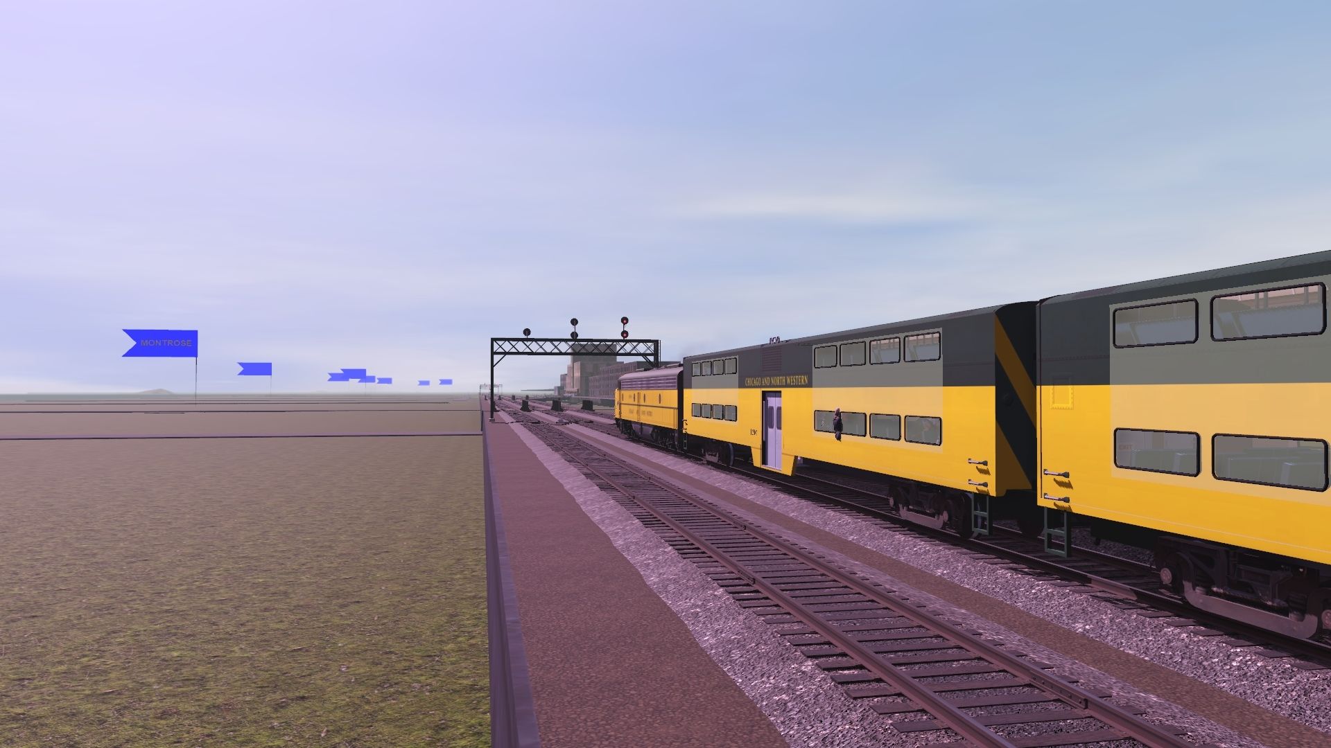 Tags: Trainz Railroad Simulator 2022, CHICAGO TRAINZ V1 TS22 ROUTE, CHICAGO TRAINZ 2 SES, E8A_CNW5045, BI-LVL_COACH_CNW1 DES, BI-LVL_CAB_CNW