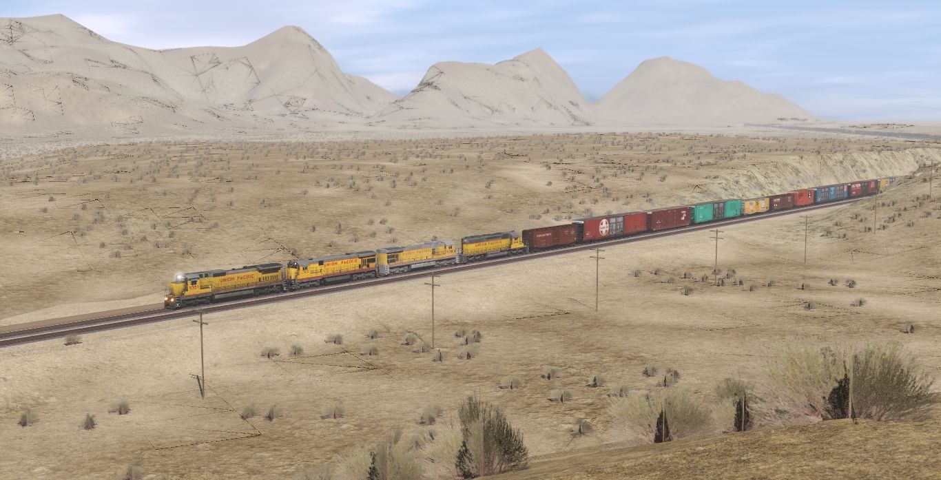 Tags: Trainz Railroad Simulator 2022, LASL Colinas Basin (Modern), UP Scenes - Mid September 1992, UP C40-8, UP C30-7 later paint, GE C36-7 (late) Union Pacific-Weathered, UP SD40-2 3002-3973, Amtrak B32-8WH Phase III 500-519 1, A&WP 50' PS-1, ATSF 86' Boxcar GSC Bx-143 (weathered), CR 60ft Boxcar B63B (Autoparts), CR 86' Boxcar Thrall X60N (PC Patch), UP 50' B-70-6 [Early] (Autoparts), SOU 50' PS-1 (1970s)