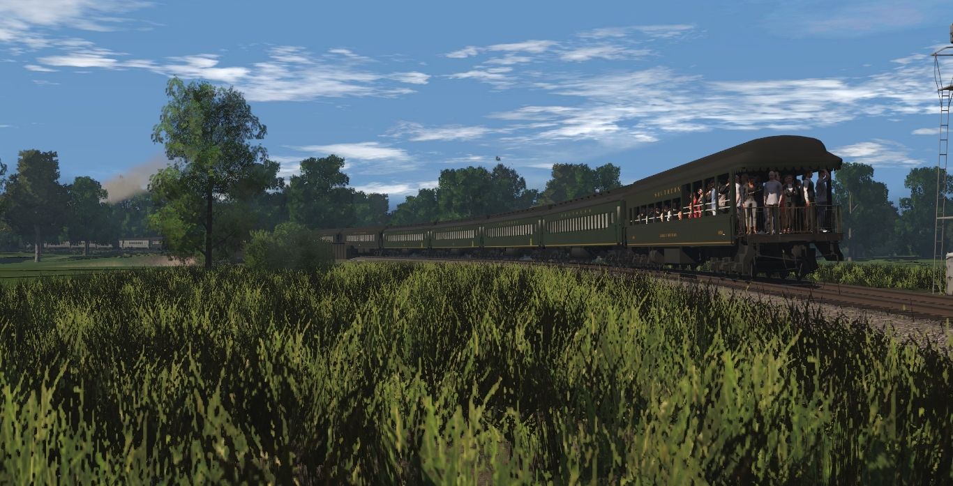 Tags: Trainz Railroad Simulator 2022, Generic Eastern Route - TRS 19, NS Steam Scenes - Early April 1982, Southern Kanawha Engine, Southern Observation 1056 Lookout Mountain, SOU Pullman Coach Gold Stripe (SOU Letters), SOU Pullman Coach Gold Stripe (Roman Letters), SOU Pullman Coach CNO&TP 3780, SOU Pullman Coach CNO&TP 3659, Southern Coach 1087 Heavyweight, Southern Coach 1086 Heavyweight, Southern Coach 1068 Archroof, Southern Coach 1084 Heavyweight, Southern Dining Car