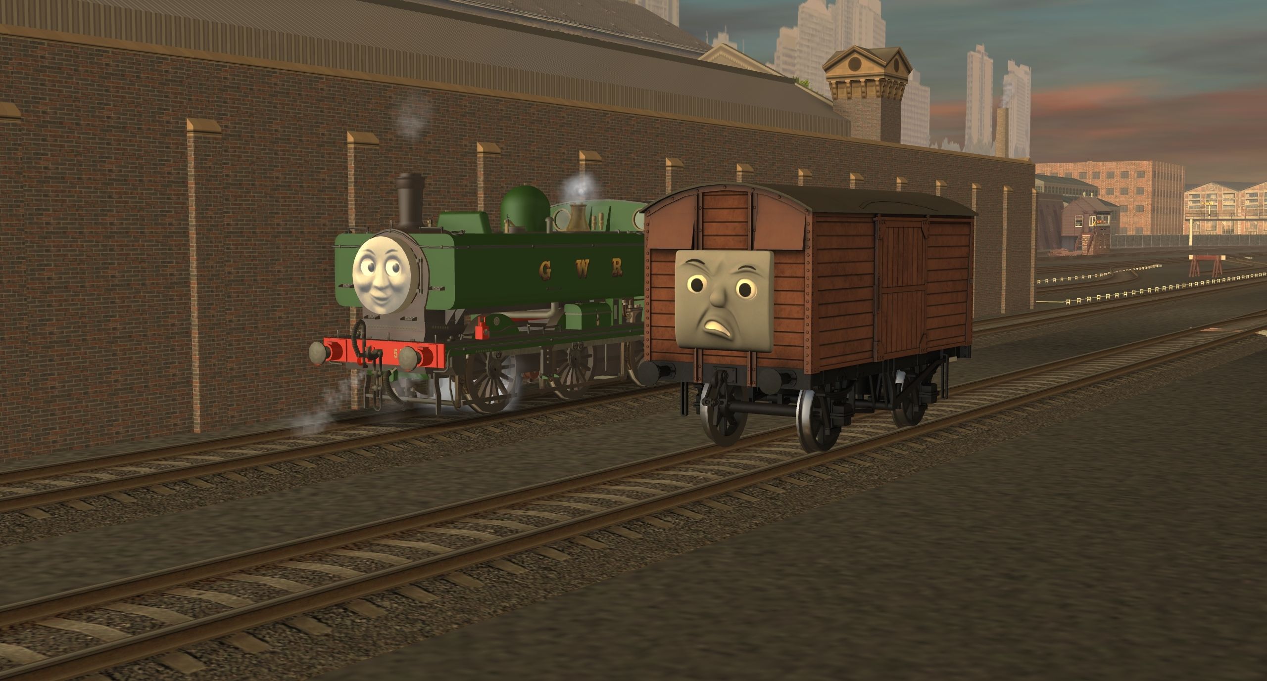 Tags: Trainz: A New Era, Knapford Station V2 UKBL, Knapford Station V2 UKBL - Default, Duck RWS, Zuri - NWR vent van (fitted unlettered), Zuri - BR 16T mineral wagon (NWR unfitted)