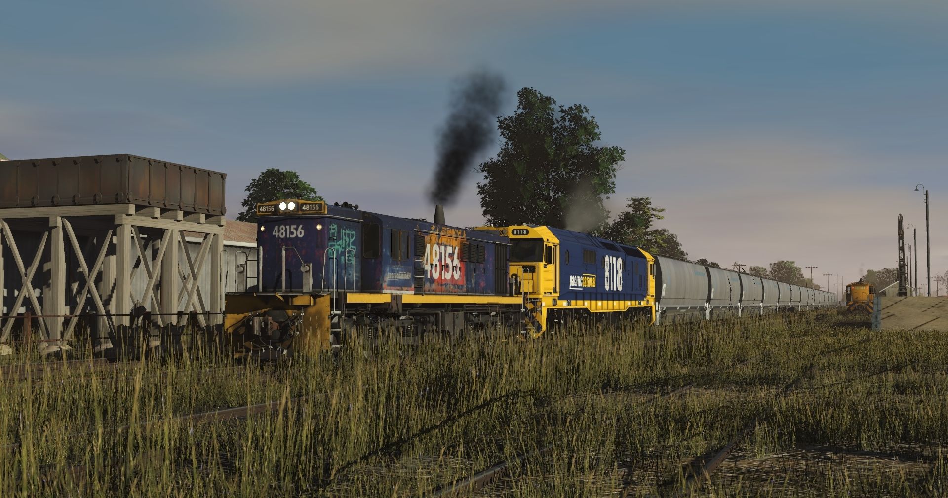 Tags: Trainz Railroad Simulator 2022, NSW Donnybrook Branch extended, Default, Flying Cam PBR, NSW MK1 48 Class PN 48156 11+, PN 81 12+ T4, NSW MK1 48 Class PN 48144 11+, NSW MK1 48 Class PN 48103 11+, Invisible Train, Manildra Group MGFH Flour Hopper