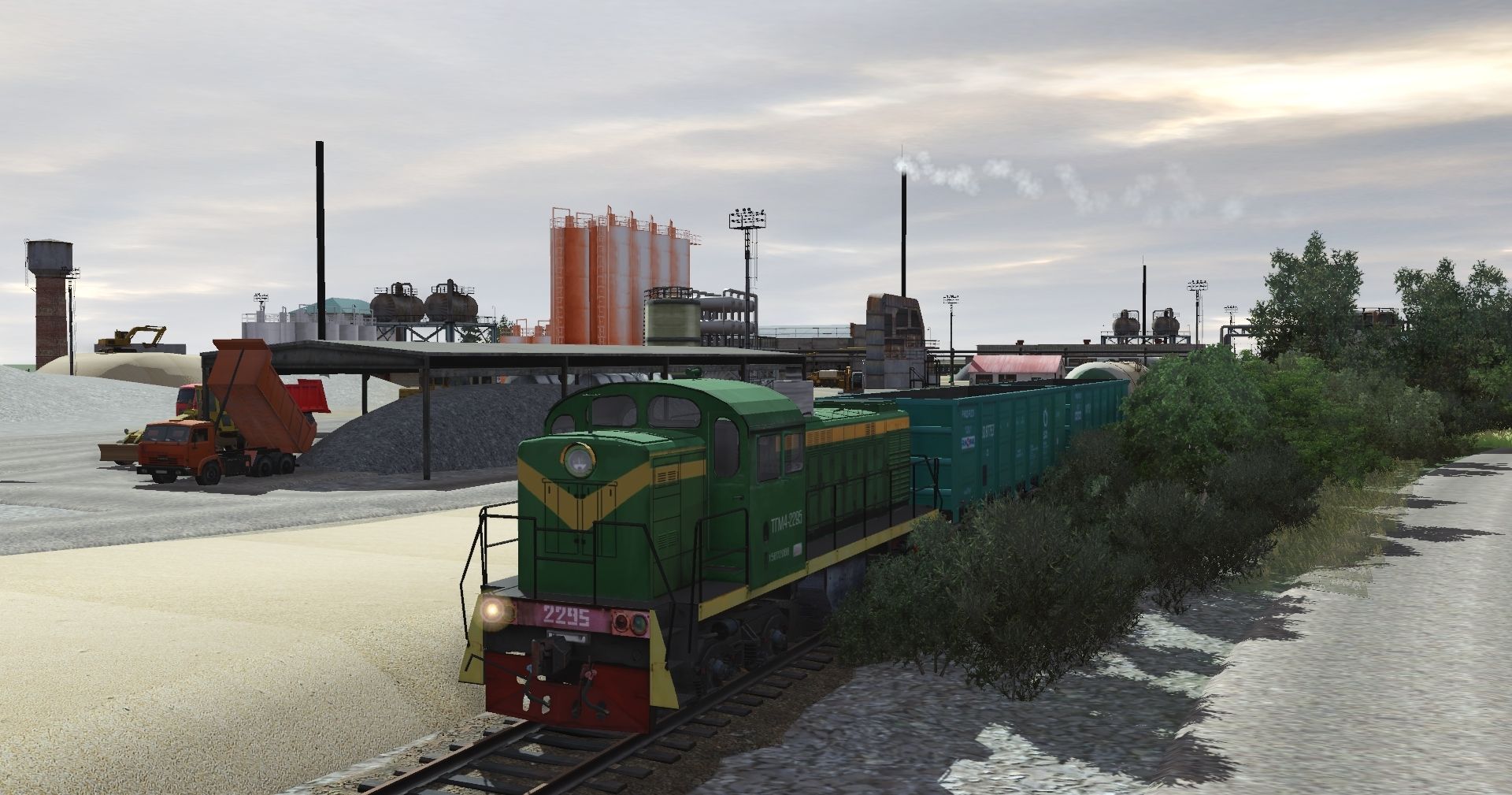 Tags: Trainz Railroad Simulator 2022, Текстильный - Ольховка, Стандартный, RiV IvPPGT-1 TGM4A-2295, KAS полувагон 63087753 RM Rail mod 12-7023-02, KAS Tanker mod. 15-1755 75117283