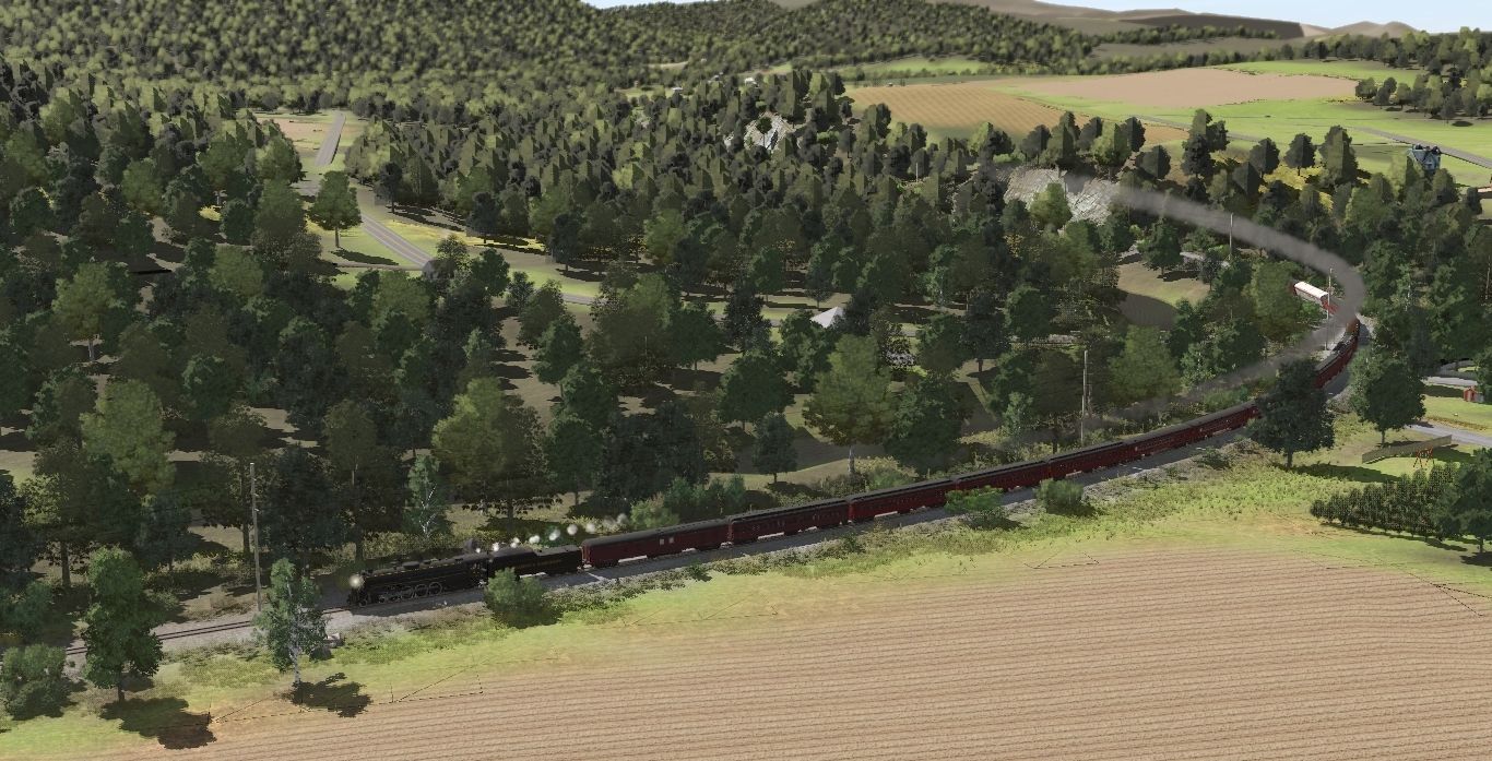 Tags: Trainz Railroad Simulator 2022, READING & NORTHERN TRS19 (post-2020), R&N Steam Scenes - Late October 2024, R&N T1 2102 Engine, R&N T1 2102 Tender, R&N RPO Powerpak Red Faded, R&N Coach Red Faded, R&N Coach Red, R&N Coach Archroof Red, R&N Super Dome Red, SLRG Budd Dome Scenic View, R&N Pullman Sleeper Red, R&N Pullman Parlor Red, BTVFD AMRoad SILVER STREAK diner