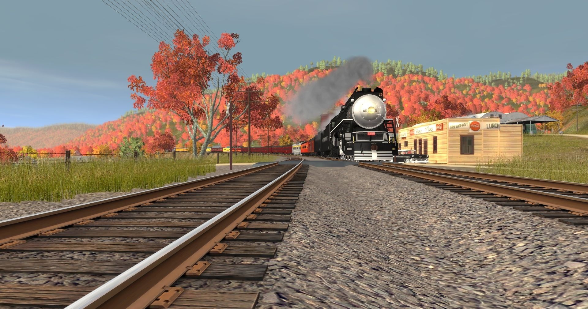Tags: Trainz: A New Era, C&O Hinton Division, SP GS-6 #4460 1943 Warbaby Engine, SP GS-6 #4460 Restored Tender, SP GS-6 #4460 1943 Warbaby Tender, NKP Tool Car RPCX 701, SP 1937 Coast Daylight Chair Car, N&W Powhatan Arrow 03 P3 Standard Coach 534, N&W NS Powhatan Arrow 03 P3 Standard Coach 535, N&W Powhatan Arrow 04 P3 Standard Coach 536, N&W NS Powhatan Arrow 04 P3 Standard Coach 537, N&W NS Powhatan Arrow 05 P3 Standard Coach 538, MILW 08 Super Dome