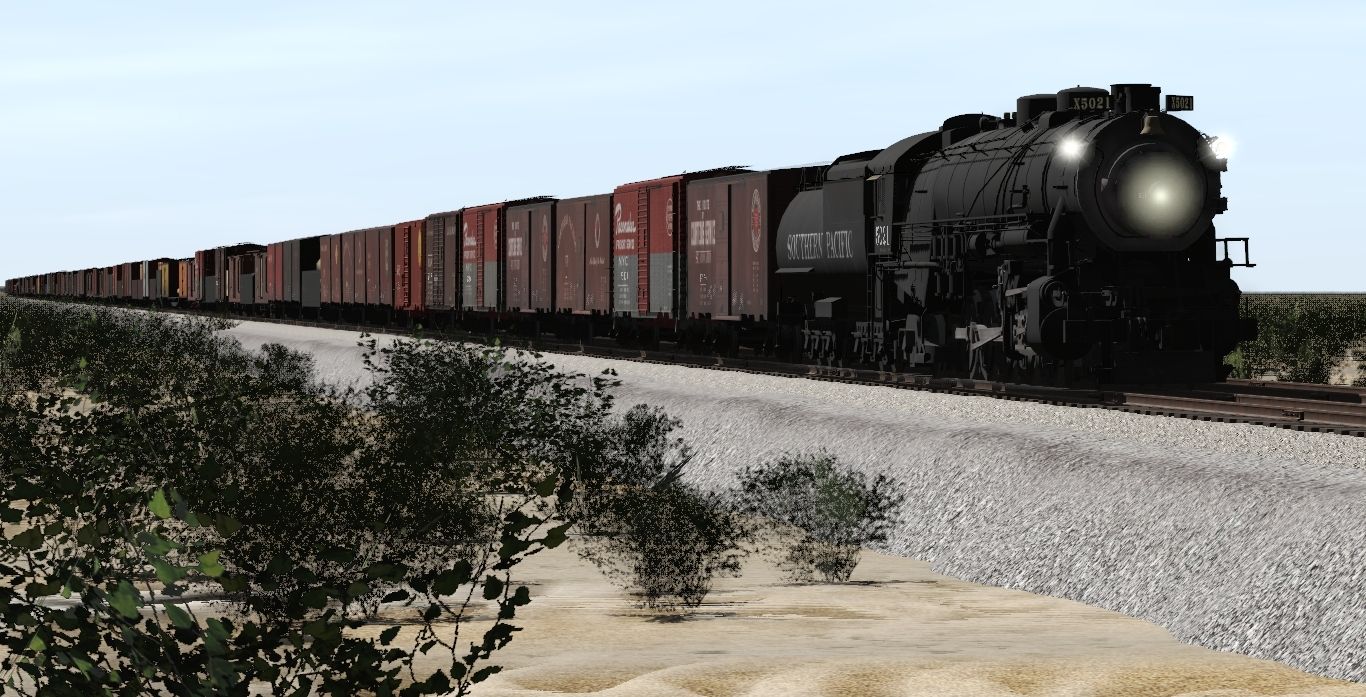 Tags: Trainz Railroad Simulator 2022, Generic Desert Route, Vintage Scenes - Late October 1952, A_Camera_00, SP 4-10-2 SP-2 Late, SP 4-10-2 Tender, 40ft Boxcar SAL, 40ft Boxcar NYC Pacemaker White Late, 40ft Boxcar NP, 40ft Boxcar NYC Pacemaker, USRA C Gondola M&STL, USRA C Gondola G&F, 40ft Boxcar Fowler BAR 2, 40ft Boxcar NYC Pacemaker Superior White Late Weathered
