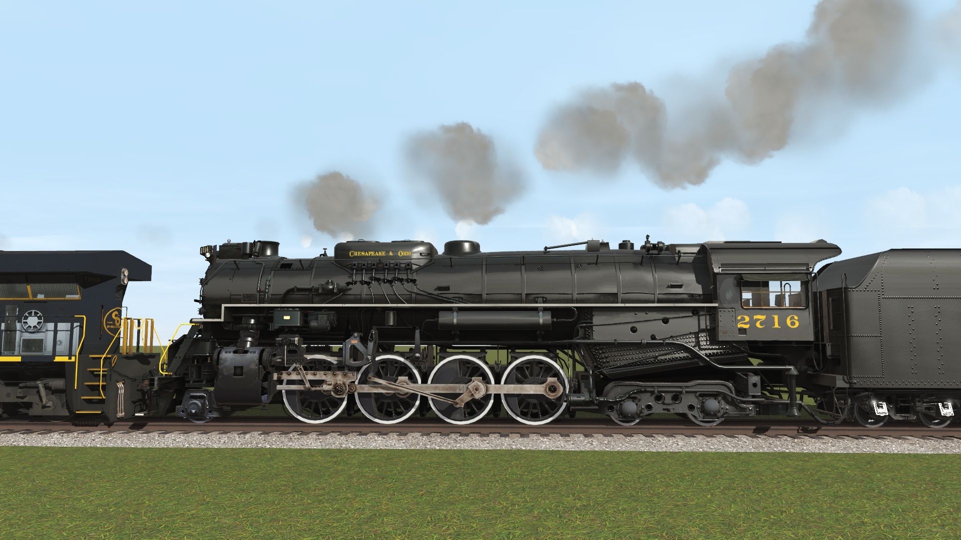 Tags: Trainz Railroad Simulator 2022, csx ns diamond template, Default, C&O Kanawha K-4 Steam, CSX ES44AH 1869 C&O HU, CSX ES44AH 1827, C&O Kanawha K-4 Tender, RPPX Coach Car #20, Steel Heavyweight Coach Green, RPPX Coach Car #22, RPPX Coach Car #21, Steel Heavyweight Coach, C&O Budd Dining Car, RPPX Coach Car Dome