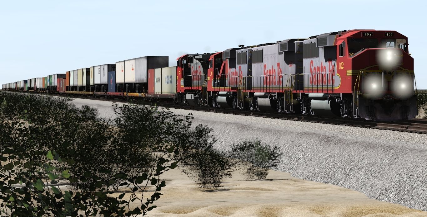 Tags: Trainz Railroad Simulator 2022, Generic Desert Route, ATSF Scenes - Late May 1990, A_Camera_00, ATSF GP60M, ATSF GP60B, ATSF B40-8W 500-559 1, TTX 89ft COFC Flatcar TTCX PSH10C Oxide Red, TTX 89ft AP TOFC Flatcar TTWX, SP 89ft AP TOFC Flatcar F-70-86, Norfolk Southern 50ft TOFC Flat, Spinecar A Unit, Spinecar E Unit, Spinecar D Unit