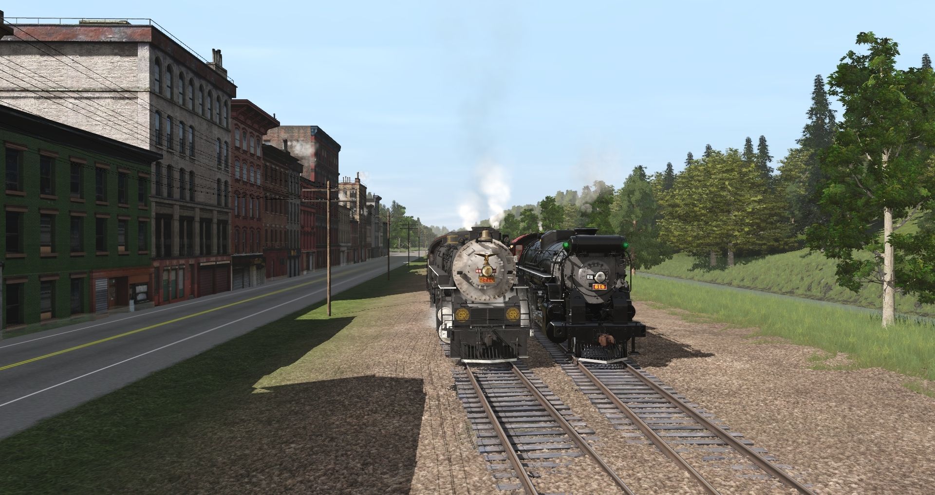 Tags: Trainz Railroad Simulator 2019, Redwood Meadow Scenic Railroad, Southern Kanawha Engine, T&P Engine I-1a 2-10-4, Southern Kanawha Tender, T&P Engine I-1a 2-10-4 Tender, Southern Coach Lounge, Southern Streamlined Coach, SOU Diner, sp sunset Pullman Coach, sp sunset Pullman Coach, SP Budd 10-6 Sleeper, Steel Heavyweight Coach Green