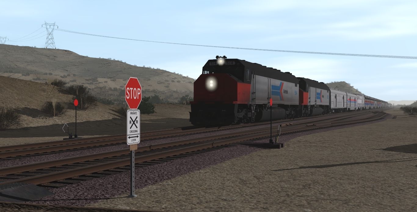 Tags: Trainz Railroad Simulator 2022, Cajon Subdivision - 1990 Part 1: The Pass, 1970's Scenes - Late August 1973, Amtrak SDP40F 514 PhI, Amtrak SDP40F 522 PhI, ATSF Baggage 3519, Amtrak Baggage 1059, ATSF SS Baggage-Dorm Transition Car, AMTK Hi-Level Transition Car Ph I, ATSF SS Hi-Level Chair Car, AMTK Hi-Level Chair Car Ph I, AMTK Hi-Level Diner Car Ph I, ATSF SS Hi-Level Lounge Car, ATSF SS Hi-Level Transition Car