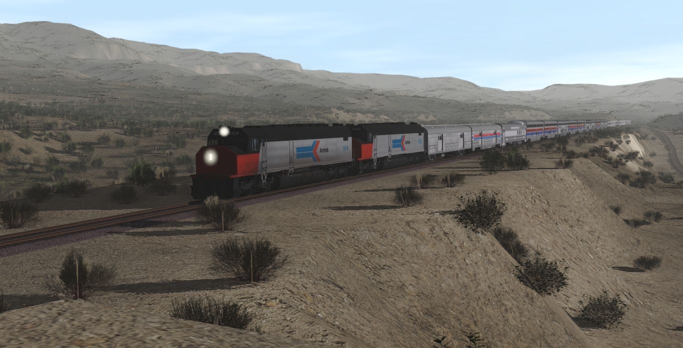 Tags: Trainz Railroad Simulator 2022, Cajon Subdivision - 1990 Part 1: The Pass, 1970's Scenes - Late August 1973, Amtrak SDP40F 514 PhI, Amtrak SDP40F 522 PhI, ATSF Baggage 3519, Amtrak Baggage 1059, ATSF SS Baggage-Dorm Transition Car, AMTK Hi-Level Transition Car Ph I, ATSF SS Hi-Level Chair Car, AMTK Hi-Level Chair Car Ph I, AMTK Hi-Level Diner Car Ph I, ATSF SS Hi-Level Lounge Car, ATSF SS Hi-Level Transition Car