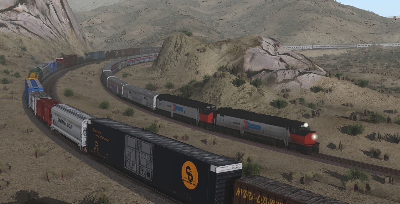 Tags: Trainz Railroad Simulator 2022, Cajon Subdivision - 1990 Part 1: The Pass, 1970's Scenes - Late August 1973, Amtrak SDP40F 514 PhI, Amtrak SDP40F 522 PhI, SP U33C - 1, SP U33C - 3, SP U33C - 2, SP SD45T-2 ph1a, SP SD45, SP SD40 - 2, SP SDP45, UP SD40-2 3002-3973, EMD DDA40X UP Post 1980