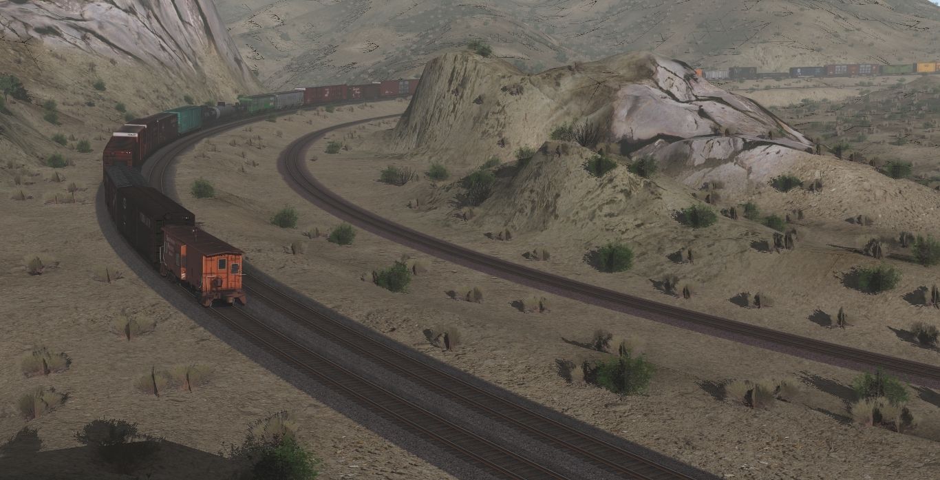 Tags: Trainz Railroad Simulator 2022, Cajon Subdivision - 1990 Part 1: The Pass, 1970's Scenes - Late August 1973, SP C40-4 Caboose- late version ver. 2, Amtrak SDP40F 522 PhI, Amtrak SDP40F 514 PhI, SP SDP45, SP SD40 - 2, SP SD45, SP SD45T-2 ph1a, SP U33C - 1, SP U33C - 3, SP U33C - 2, UP SD40-2 3002-3973