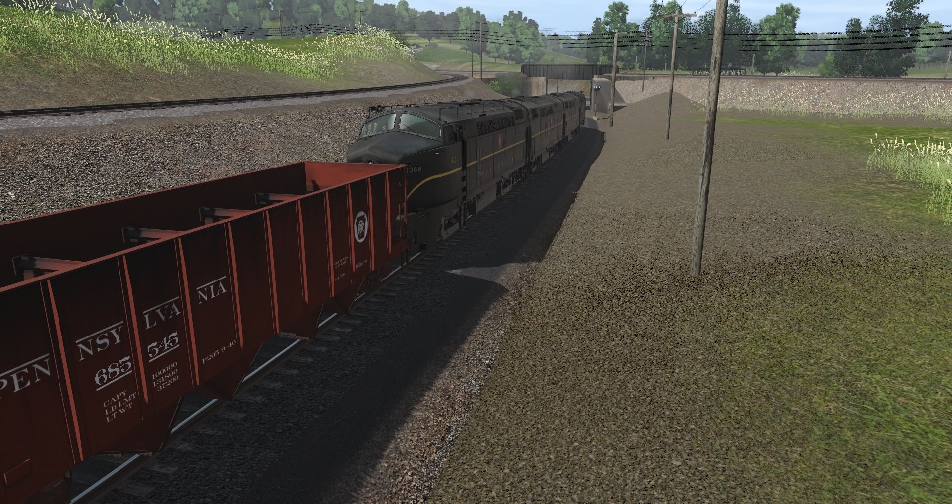 Tags: Trainz Railroad Simulator 2022, Pennsy Lines- Pitts to Philly and More WIP 22E1, Cressin test, PRR ABF-18, PRR ABF-18B, PRR GLa Hopper, PRR H21a Hopper, PRR N5c Caboose Steam-Era Late