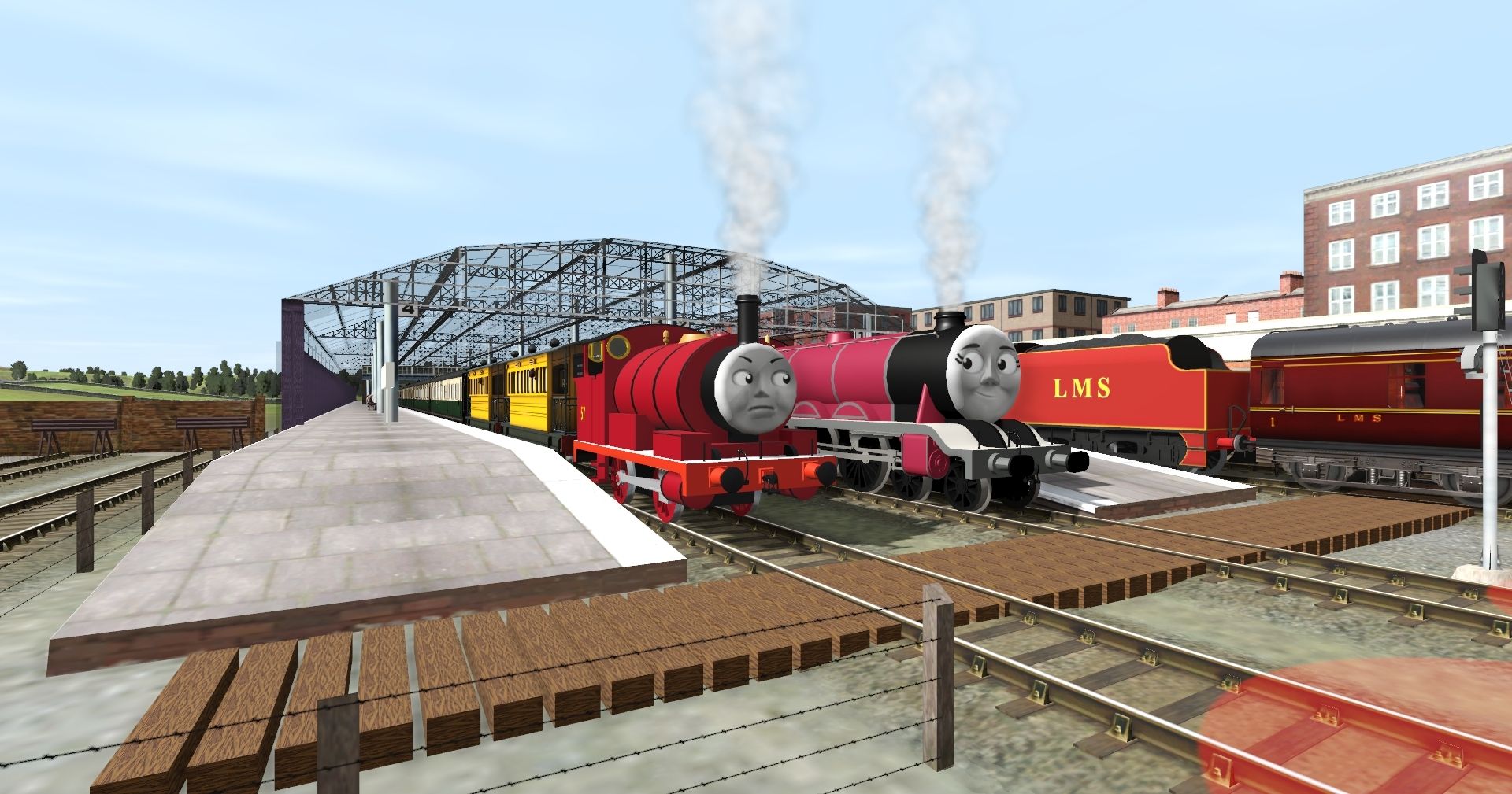 Tags: Trainz Railroad Simulator 2019, Island of Sodor, Default, TTTE - Danielle the Saddle Tank Engine (MR), Flying Cam PBR, TTTE - Crystal the Big Engine, TTTE - Hannah the Tram Coach (PBR), TTTE - Cadin the Princess Engine (STW3D) (MR), LMS PIII Stanier FK, TTTE - Cadin's Tender (STW3D) (MR), TTTE - Crystal's Tender, NWR (WNW) Maunsell Kitchen Coach (Green), NWR (WNW) Maunsell Dining Coach (Green), LMS PIII Stanier TO