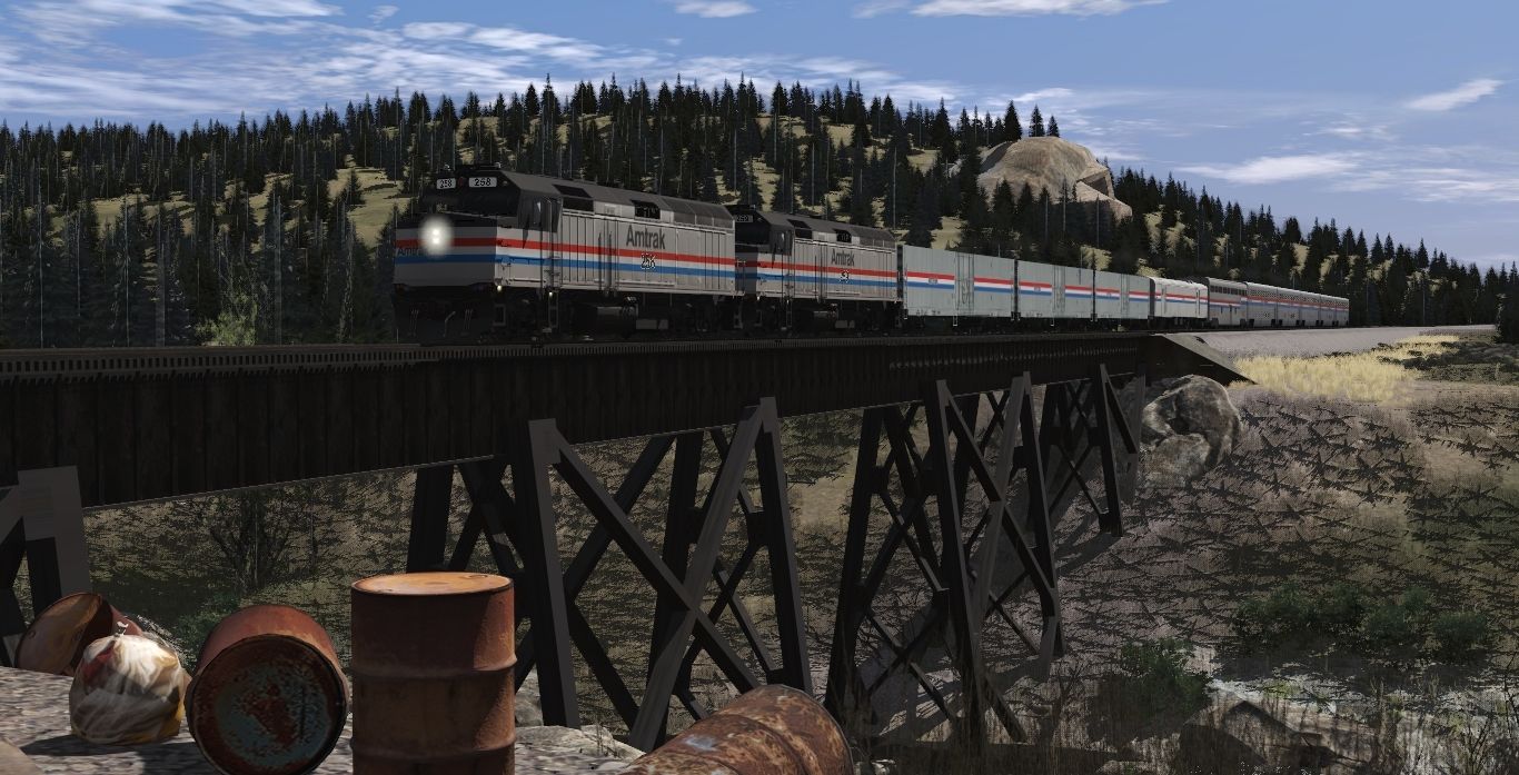 Tags: Trainz Railroad Simulator 2022, BN Oasis V3, BN Scenes - Mid April 1991, AMTK F40PH ph3 (early), Amtrak HEP MHC (Mail), Amtrak HEP MHC, Amtrak HEP Baggage 1178-1195, AMTK Hi-Level Transition Car Ph III (Superliner), Amtrak III Sleeper Superliner, Amtrak III Diner Superliner, Amtrak III Coach Superliner, 40ft Boxcar NP