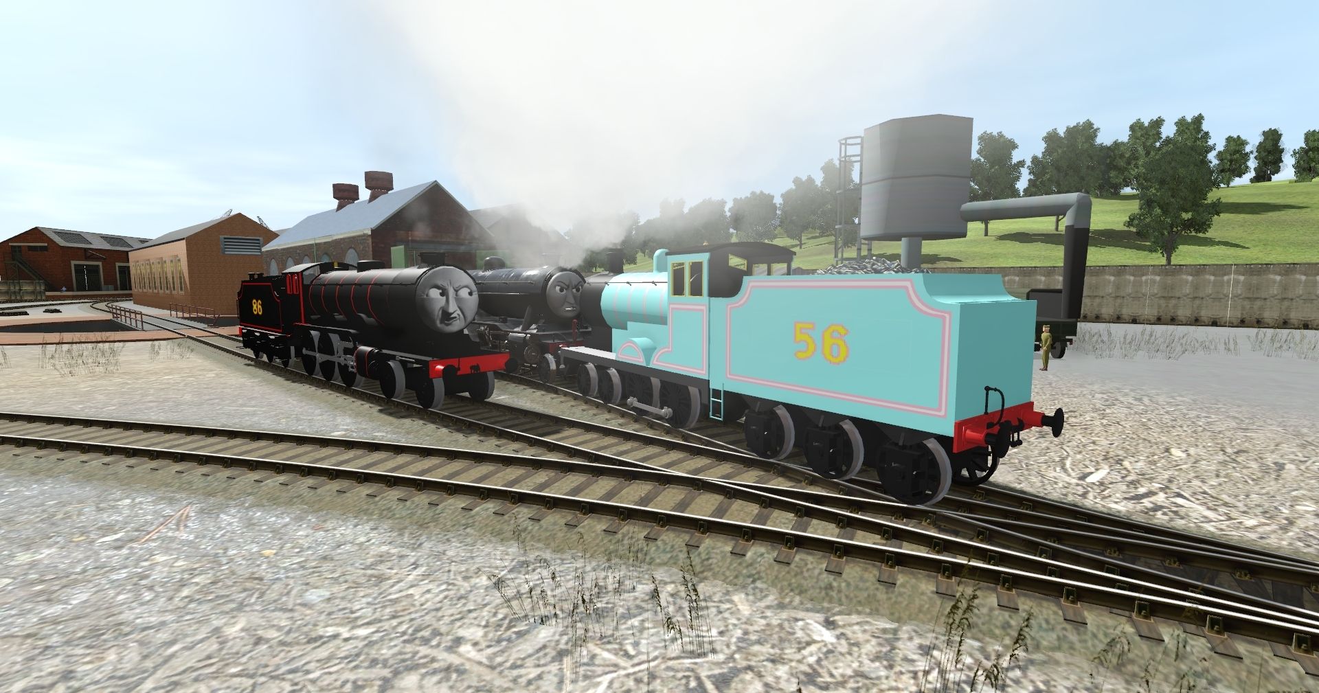 Tags: Trainz Railroad Simulator 2019, Island of Sodor, Default, Flying Cam, TTTE - Millie the Tender Engine (MR), TTTE - Gary the Smug B1, TTTE - Dudley the Vagrant Engine (Clean), TTTE - Dudley's Tender (Clean), TTTE - Millie's Tender (MR), TTTE - Gary's Tender