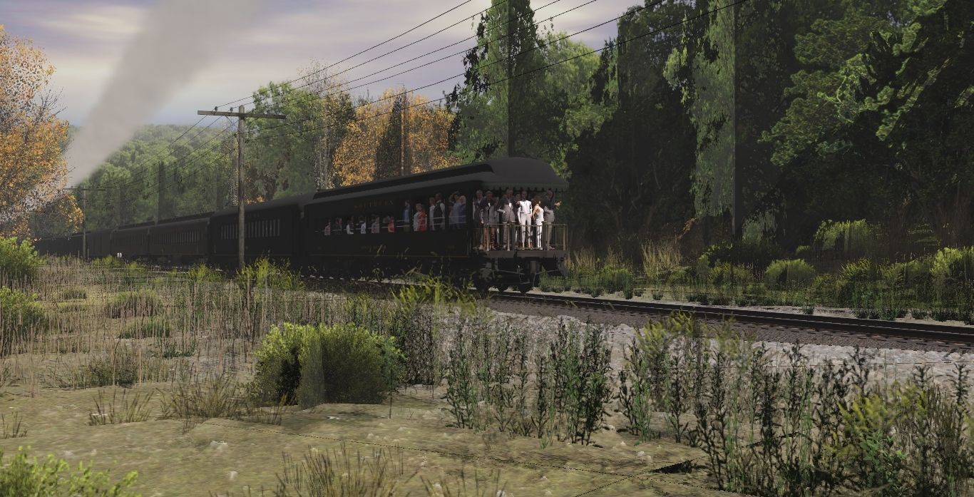 Tags: Trainz Railroad Simulator 2022, Linville Cutoff, 1970's Steam Scenes - Early October 1975, Southern 4501 Engine Green, Invisible Train, Southern Observation 1056 Lookout Mountain, Southern Coach 1068 Archroof, SOU Pullman Coach CNO&TP 3780, SOU Pullman Coach CNO&TP 3659, SOU HW Harriman Baggage Car NRHS 534, Southern Coach 1086 Heavyweight, Southern Coach 1067 Archroof, Southern Coach 1081 Heavyweight, Southern Coach 1087 Heavyweight
