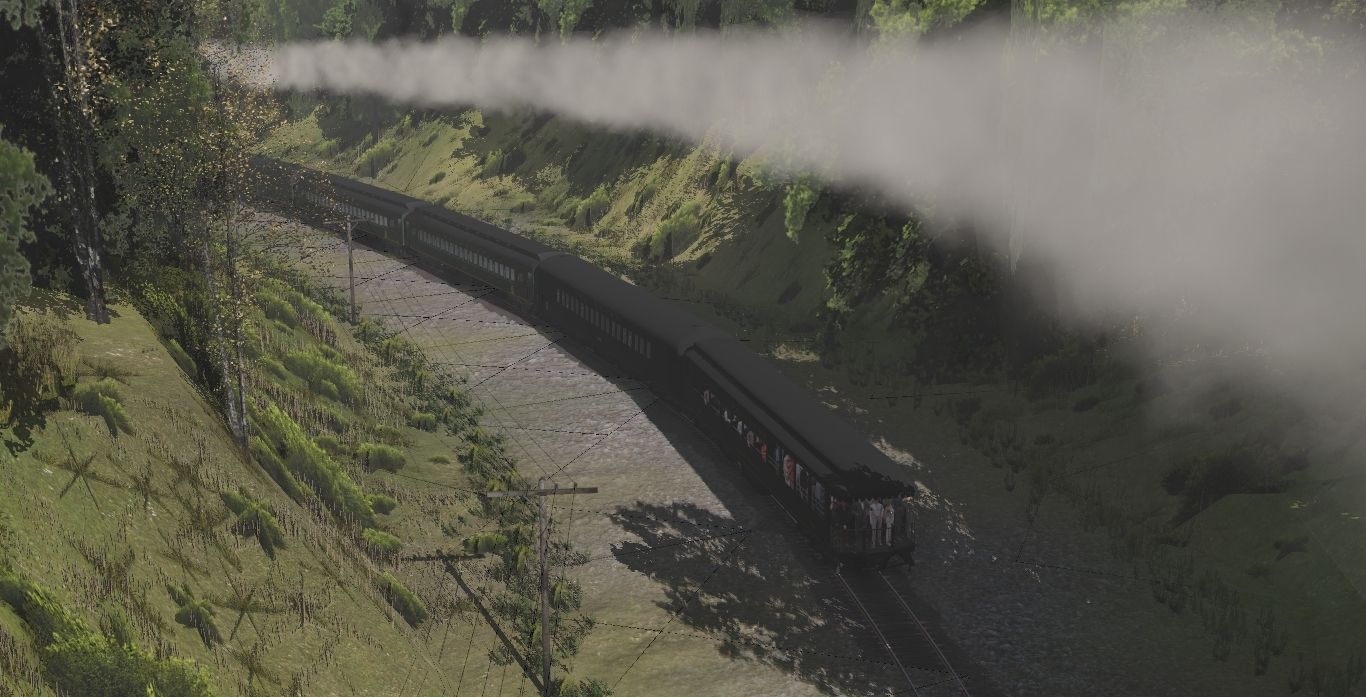 Tags: Trainz Railroad Simulator 2022, Linville Cutoff, 1970's Steam Scenes - Early October 1975, Southern 4501 Engine Green, Southern Observation 1056 Lookout Mountain, Southern Coach 1068 Archroof, SOU Pullman Coach CNO&TP 3780, SOU Pullman Coach CNO&TP 3659, SOU HW Harriman Baggage Car NRHS 534, Southern Coach 1086 Heavyweight, Southern Coach 1067 Archroof, Southern Coach 1081 Heavyweight, Southern Coach 1087 Heavyweight, Southern Coach 1084 Heavyweight