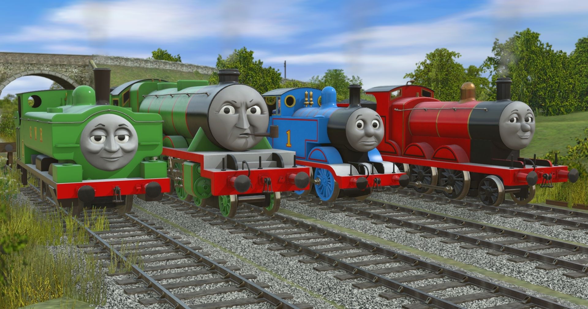 Tags: Trainz Railroad Simulator 2019, IoS - The Kellsthorpe Extension, TTTE - Duck, TSI - Thomas the Tank Engine, TSI - James the Red Engine, TSI - Henry the Green Engine (New Shape), TSI - James' Tender, TW3D - Cranky The Crane, TSI - Henry's Tender