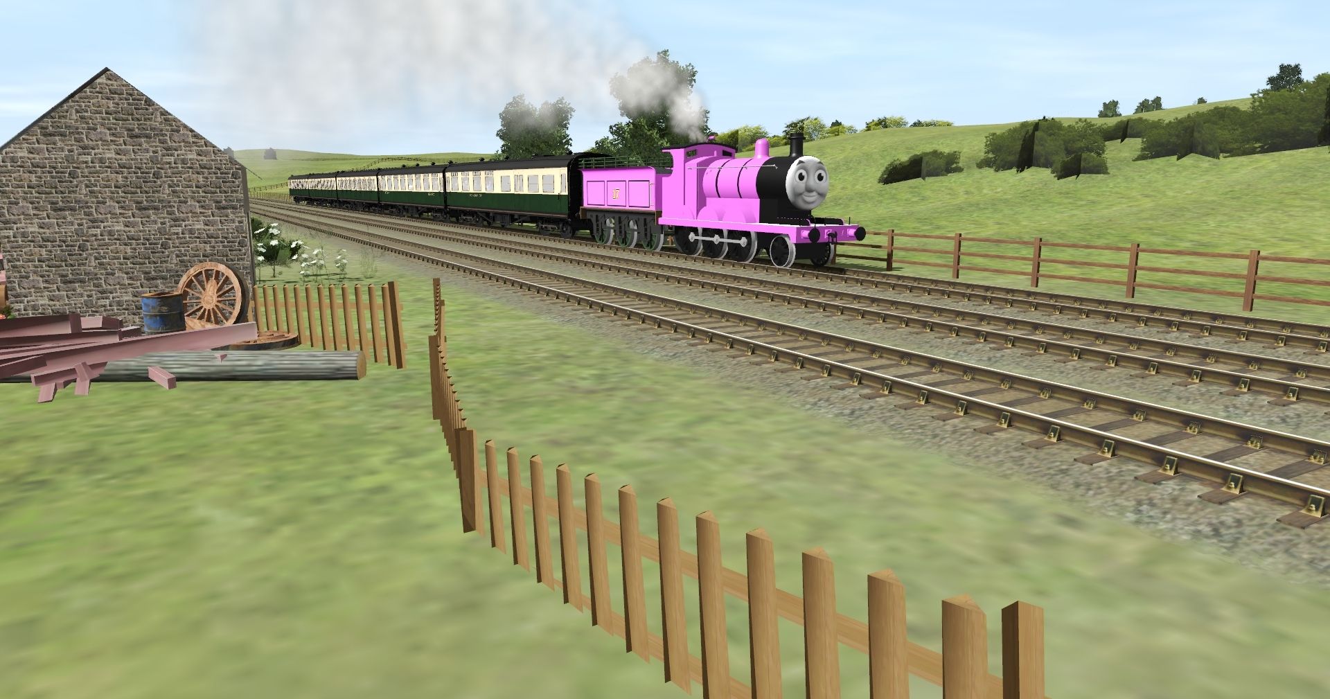 Tags: Trainz Railroad Simulator 2019, Island of Sodor, Default, TTTE - Elcy The Pink Tender Engine, STW3D - Emily's Tender, NWR (WNW) Maunsell Kitchen Coach (Green), NWR (WNW) Maunsell Dining Coach (Green), NWR (WNW) Maunsell Composite Coach (Green), NWR (WNW) Maunsell Brake Coach (Green)