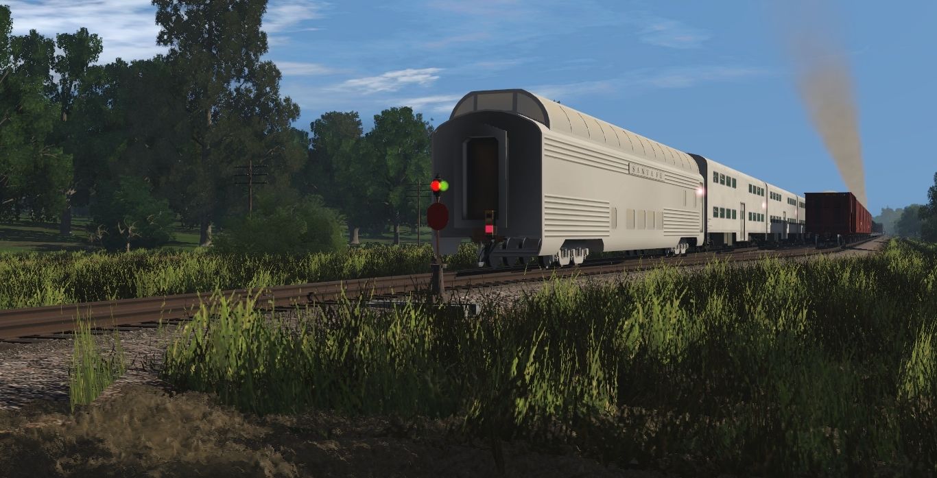 Tags: Trainz Railroad Simulator 2022, Generic Eastern Route - TRS 19, SLSF 1522: 2001 BNSF Employee Appreciation Special, BNSF C44-9W 4772-4877 TS19 1, Frisco 1522 Engine, FRED BNSF, cg atsf-dome lounge car, Ballast Hopper BNSF, Blank Lightweight PS Bi-level Coach, Silver Coach, ATSF SS Diner, ATSF Observation-Business Car (Standard ATSF Drumhead Silver/MOW Livery), CWR CENTER FLATCAR GRAY, AT&SF sleeper Pine 10 6 Budd