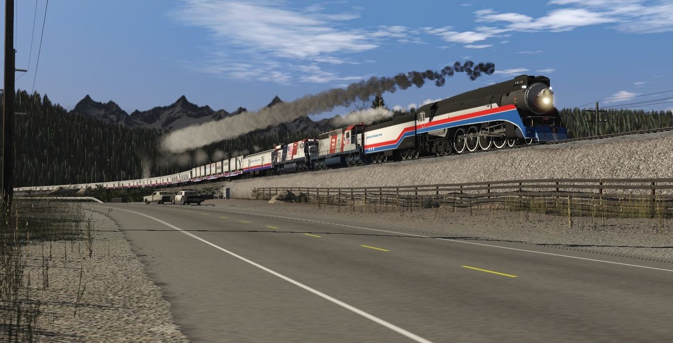 Tags: Trainz Railroad Simulator 2022, BN Oasis V3, 1970's Steam Scenes - Late October 1975, OF SP GS-4 AFT 1976, BN SD40-2 #1876 bicentennial V2 Dirty Version, CR U34CH #1776, NP F9A Freight, GN U33C U33C #2533, BN F7B #675, np_sd45_late, Great Northern Class S-2 4-8-4, GN EMD F7A Late Two Light, OF SP GS-4 AFT Tender 1976 - 2001, AFT 01 Tool Car
