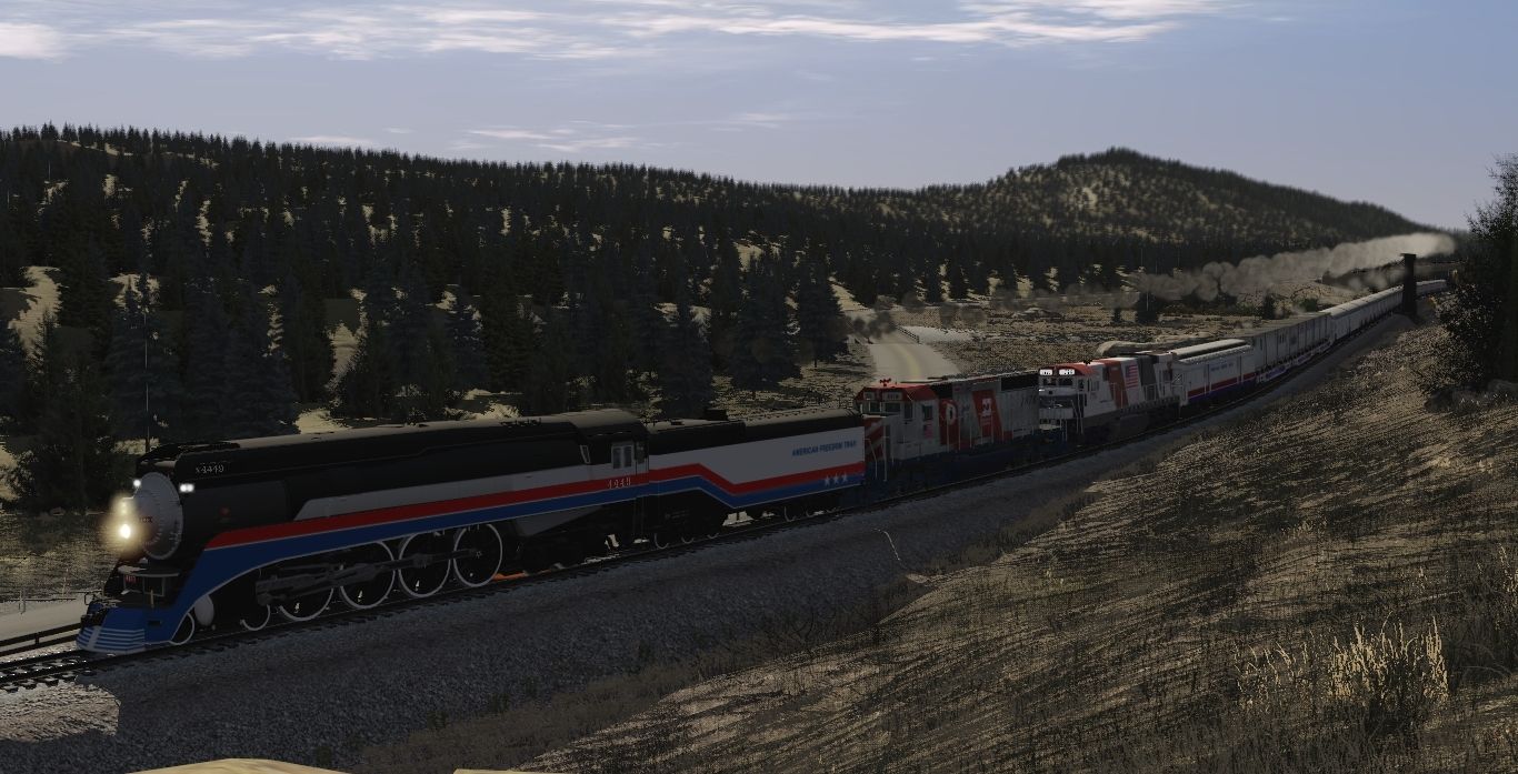 Tags: Trainz Railroad Simulator 2022, BN Oasis V3, 1970's Steam Scenes - Late October 1975, OF SP GS-4 AFT 1976, BN SD40-2 #1876 bicentennial V2 Dirty Version, CR U34CH #1776, OF SP GS-4 AFT Tender 1976 - 2001, AFT 01 Tool Car, AFT 02 Trailer Car, AFT 03 Trailer Car, AFT 04 Trailer Car, AFT 05 Showcase Car, AFT 06 Showcase Car, AFT 07 Display Car