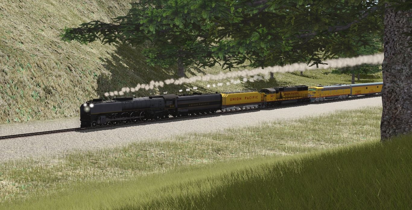 Tags: Trainz Railroad Simulator 2022, Western Idaho Scenes V2, UP Steam Scenes - Mid May 1989, UP Class FEF-3 TTG-Y, UP SD60M(Triclops), up e9a, UP Class FEF 23-C Oil Tender TTG-Y, UP Auxiliary Tender, up baggage 5772, up Lightweight COLA Baggage Aux Power Dorm, UP American Falls, UP American Sailor, UP coach 5450, up baggage 5774
