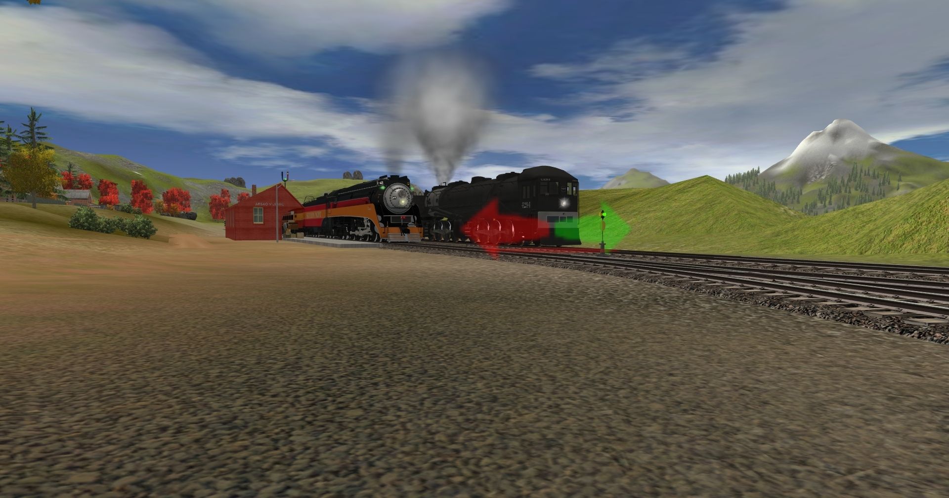 Tags: Trainz: A New Era, Kickstarter County, SP AC-12 4294, SP GS-4 Engine Daylight, SP AC-12 4294 Tender, SP GS-4 Tender Daylight Postwar, SP 1937 Coast Daylight Baggage-Chair Car, SP 1937 Coast Daylight Chair Car