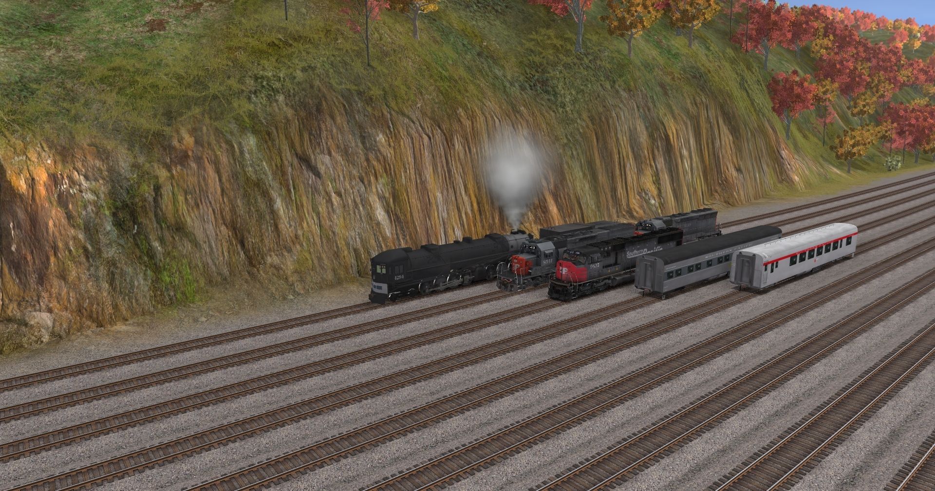 Tags: Trainz: A New Era, C&O Hinton Division, SP AC-12 4294, SP SD70M, SP SD40T-2, SP SD45, SP Lightweight Cascade 4-4-2, SP AC-12 4294 Tender, SP Lightweight Shasta Daylight Late Coach w/ Antenna