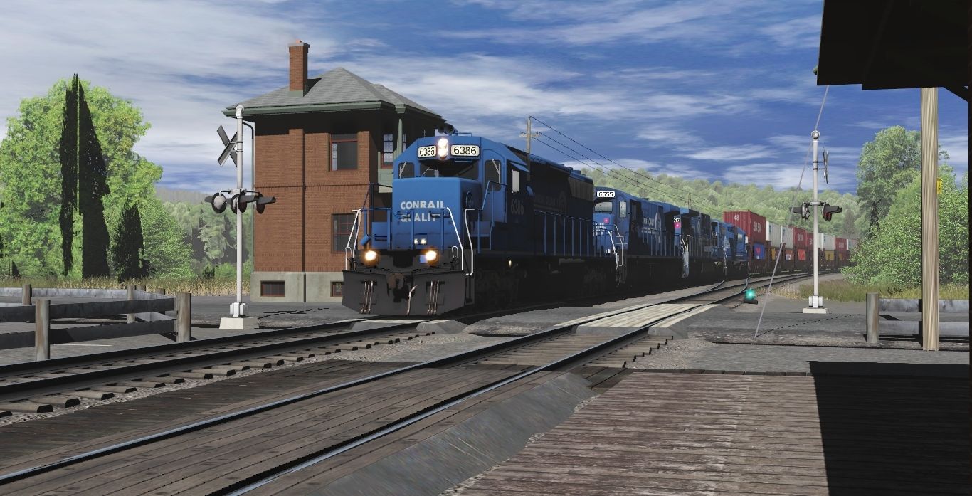 Tags: Trainz Railroad Simulator 2022, Eastern Mountain Route, Conrail Scenes - Mid June 1992, Conrail Quality SD40-2, CR C30-7A CRQ, CR C39-8 late, CR GP38-2 CRQ, AMTK F40PH ph3 (early), AMTK F40PH ph3, CR Gunderson Twin Stack Unit B, CR Gunderson Twin Stack Unit D, CR Gunderson Twin Stack Unit E, CR Gunderson Twin Stack Unit A, CR Gunderson Twin Stack Unit C
