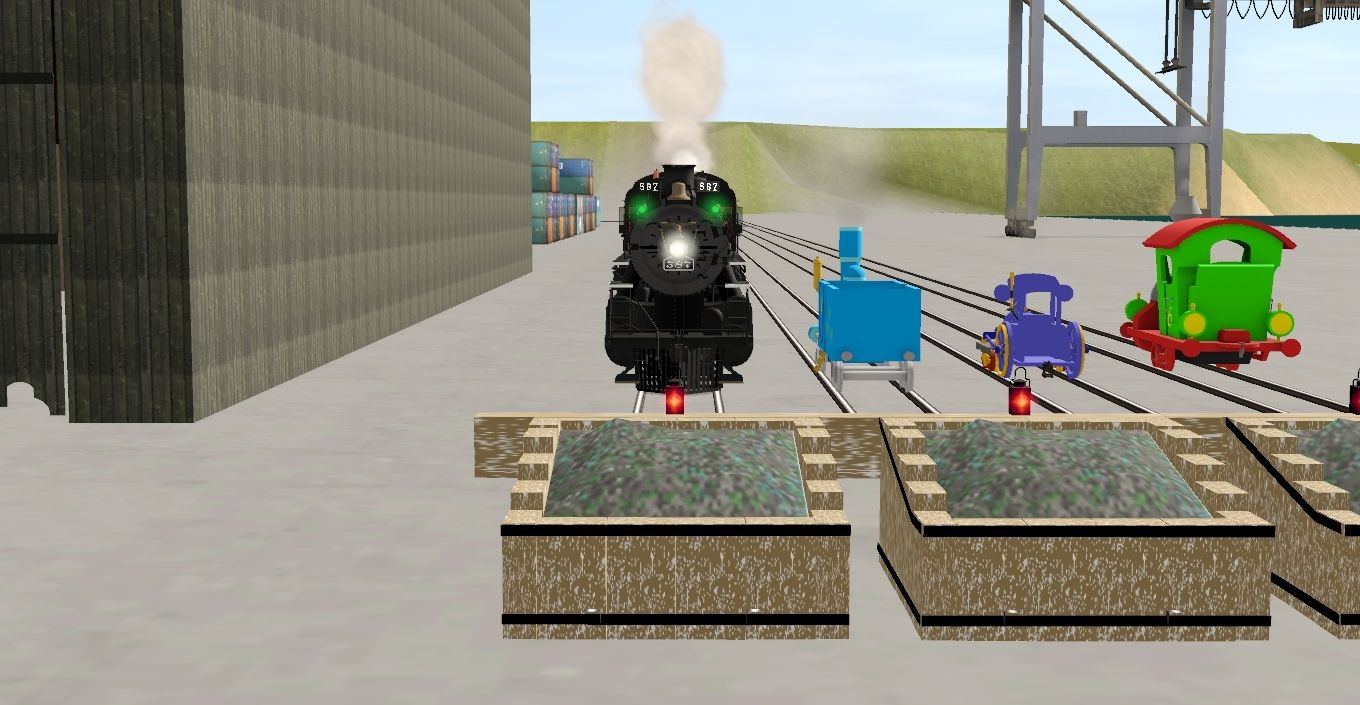 Tags: Trainz Railroad Simulator 2019, Gridinia Bay, CJ&F - Azul the Little Blue Engine, CJ&F - Tracy The Little Engine That Could (2011), Roy The NKP Mikado, CJ&F - Emma the Dockside Tank Engine, Lionel Lines Bucyus Erie Wrecking Crane 2460, CJ&F - Azul's Tender, Roy The NKP Mikado's Tender Excursion (Gold Lining), AND Boxcar, BN Centerflow Hopper #458341, PRR FM flat car, PRR LO 2003