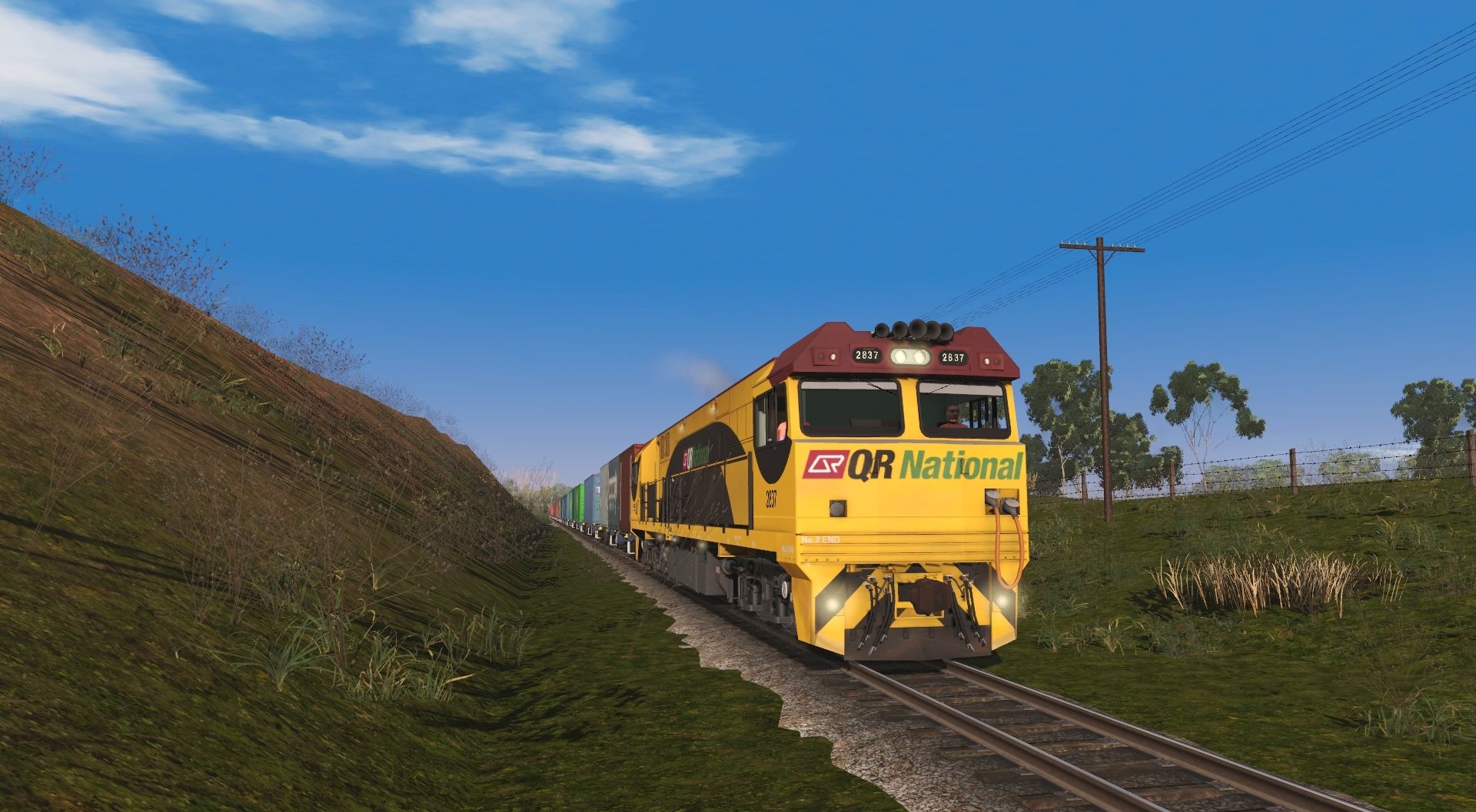 Posted by: AussieTrainspotter | Posted:2024-11-27 11:44:40 Caption: Tags: Trainz Railroad Simulator 2022, Queensland, 2800 run, QRN 2800 class Eagle, Pacific National RQHY Container Wagon