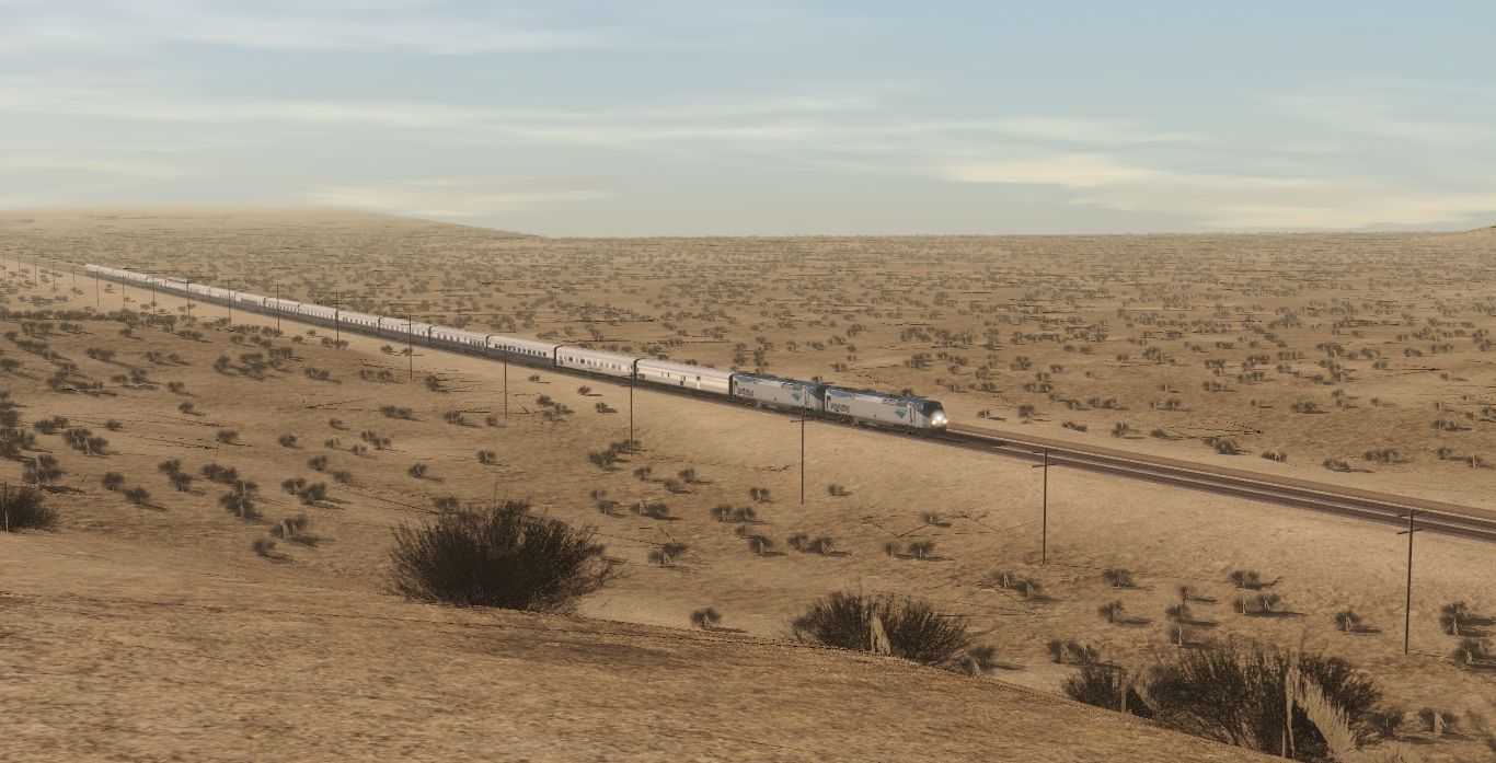 Tags: Trainz Railroad Simulator 2022, LASL Colinas Basin (Modern), Themed Trains: AOE in Early April 2007, AMTK P42DC ph V, UP C45AH, UP letters painted SD70M, UP Flag painted SD70M, CP Rail ES44AC, AOE 800715 Service-Laundry 'Los Angeles, AOE 800755 Crew Sleeper 'Yellowstone Park, AOE 800668 Crew Sleeper 'Grand Canyon, AOE 800050 Crew Diner 'San Francisco, AOE 800753 Sleeper 'Bar Harbor, AOE 800231 Sleeper 'Monte Carlo