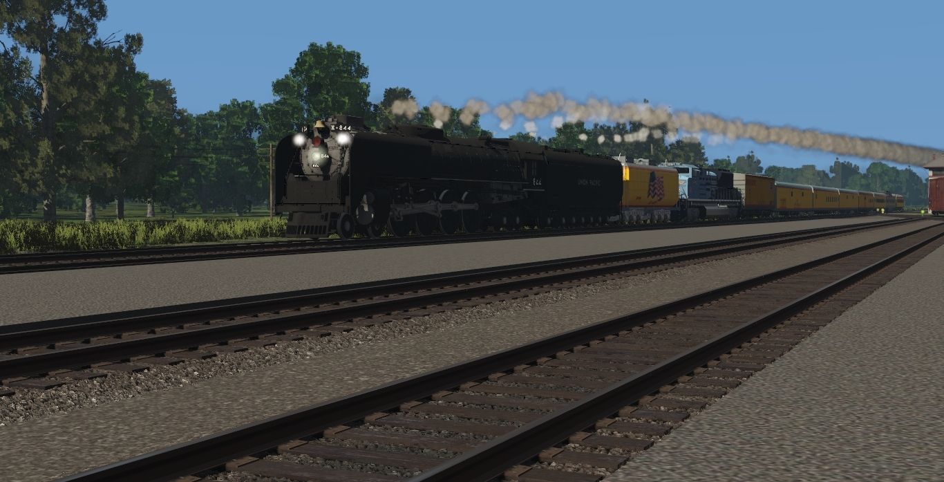 Tags: Trainz Railroad Simulator 2022, Generic Eastern Route - TRS 19, UP Steam Scenes - Early June 2011, UP Class FEF-3 Modern, UP 1982 Missouri Pacific SD70ACe, UP SD40N 1500-1899 [PTC] SHIELD, UP Class FEF 23-C Oil Tender Black, UP Auxiliary Tender 809 (Jim Adams) SR, UP Heritage Fleet Stair Car/Box car, up baggage 5772, 50ft Boxcar TTX, up baggage dormitory 6002, 50ft Boxcar TR, up baggage 5772
