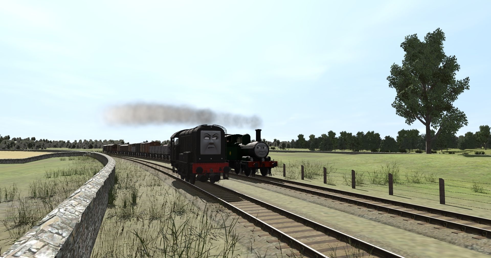 Tags: Trainz Railroad Simulator 2022, Island of Sodor Modern, Default, SW3D - Diesel (Tane +), RWS Oliver (NWR Livery), TTTE - Toad the brakevan [TRS19], Engie's - TVS SR CCT 8 Wheeled Van Type 1 Alt Liveries (TS19), Engie's - TVS SR Pillbox Conflat (TS19), Engie's - TVS 14T Tanker Wagon Alt. Liveries (Type 1 TS19), Engie's - TVS 7 Plank Wagon (Classic TS19) (White Reskin Base), Engie's - TVS LNER 12T Van (S2 - S8 TS19), Engie's - TVS LMS 12T Steel Van (TS19), Engie's - TVS LNWR 6T Van (TS19), Engie's - TVS LBSC 8T Van (TS19)